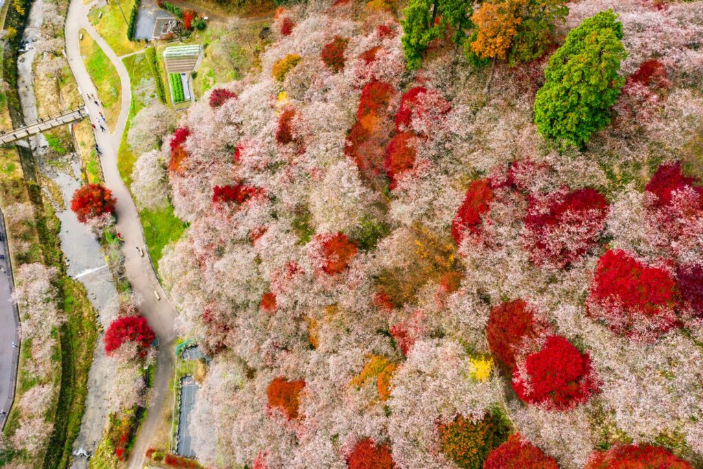 ชิกิซากุระ (Shikizakura) มีความหมายว่า “ซากุระสี่ฤดู” ที่ผลิบานทั้งในฤดูใบไม้ผลิและฤดูใบไม้ร่วง ถูกปลูกไว้กว่าหมื่นต้น ที่โอบาระ เมืองโทโยตะในครั้งนี้เราจะมาแนะนำ 2 สถานที่ชมชิกิซากุระในจังหวัดไอจิ ทัศนีภาพที่สามารถชมซากุระที่แสนงดงามกับใบไม้แดงสีสันสดใสได้พร้อมกันนั้นราวกับปาฏิหาริย์