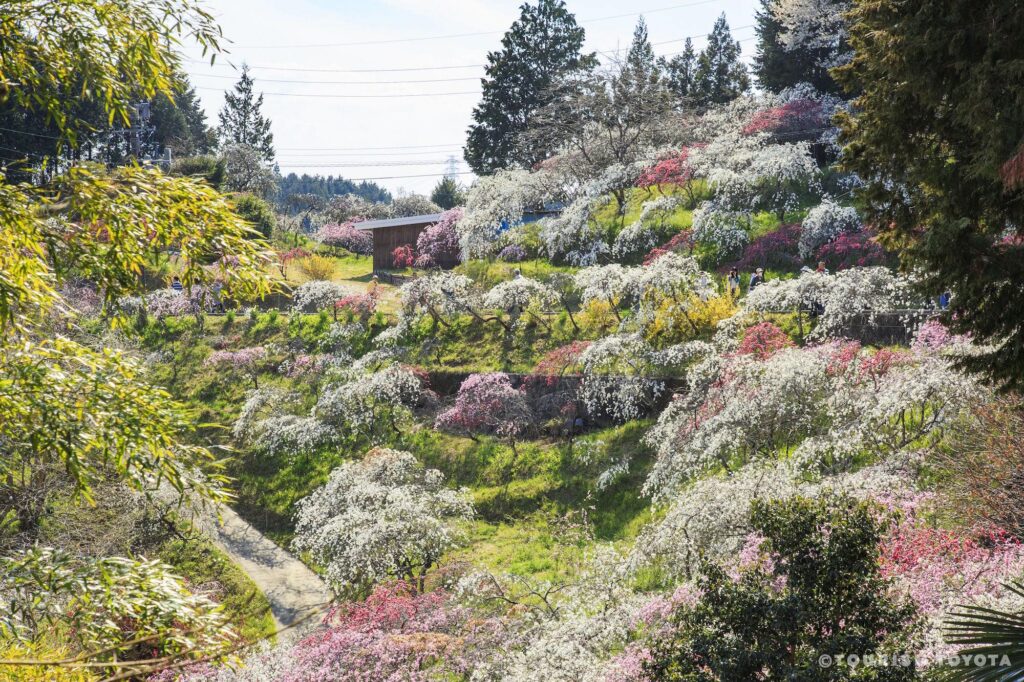 ที่คามินากะโจ (Kaminakacho) เขตอาซาฮีเมืองโทโยตะ มีต้นท้อพวงระย้า หรือ ชิดาเระโมโมะ (Shidaremomo) ขึ้นกันอยู่เป็นกลุ่มกว่า 3,000 ต้น โดยในบริเวณรอบ ๆ คามินากะโจได้มีการทำทางเดินที่สามารถชมดอกท้อพวงระย้าบานสะพรั่งงดงามได้ จากแต่ละจุดของทางเดินที่มีความยาวต่อเนื่องกันกว่า 1 กิโลเมตร จากที่จอดรถชั่วคราวที่ตั้งขึ้นพิเศษในช่วงฤดูกาลชมดอกไม้ ซึ่งมีช่วงเวลาตั้งแต่ต้นถึงกลางเดือนเมษายน