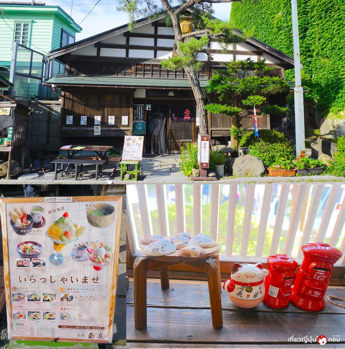 ร้านคาเฟ่ Sabo Kikuizumi 茶房・菊泉 คาเฟ่แห่งนี้อยู่ในอาคารมีตำนานมาอย่างยาวนานตั้งแต่ปีค.ศ.1921 เดิมทีเคยเป็นบ้านของพ่อค้าผู้ร่ำรวยชาวฮาโกดาเตะ ปัจจุบันได้ถูกปรับเปลี่ยนเป็นคาเฟ่โบราณเสริฟของหวานยอดฮิตอย่างพาร์เฟต์ในสไตล์ญี่ปุ่น รวมถึงชาและกาแฟอีกด้วย