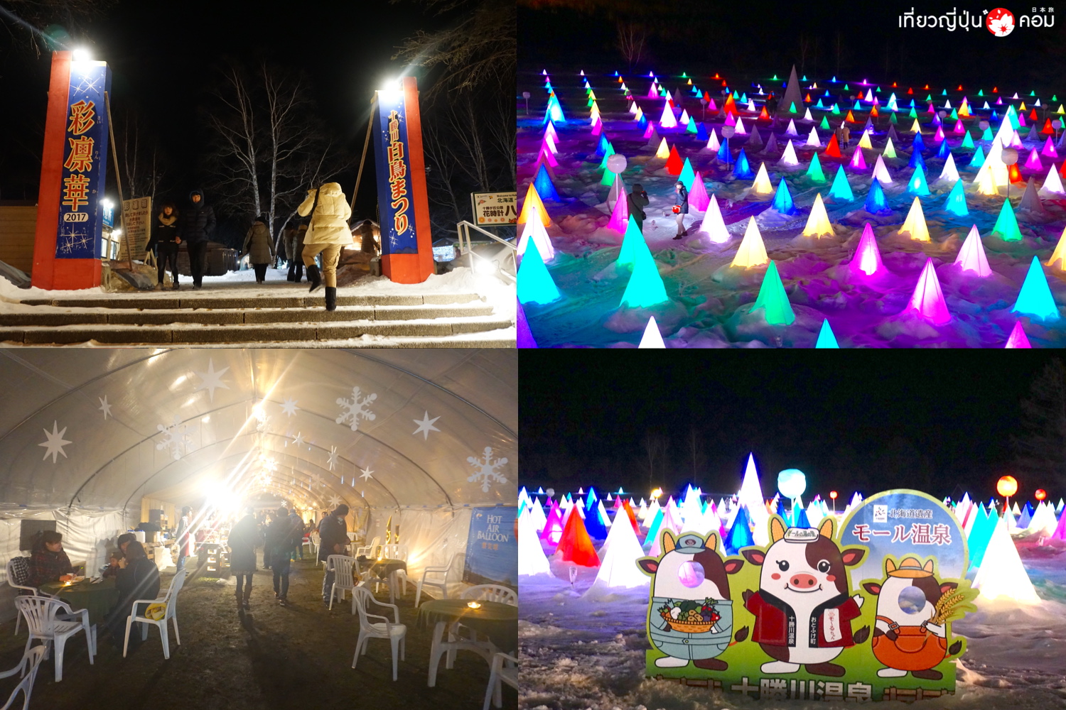 งาน Lake Shikaribetsu Igloo Village จัดขึ้นช่วงปลายเดือนมกราคม ถึงกลางเดือนมีนาคม เพลิดเพลินกับหมู่บ้านเอสกิโม ท่ามกลางทะเลสาบชิคาริเบ็ทสึ ที่กลายเป็นน้ำแข็ง พร้อมกิจกรรมกลางหิมะอีกมากมาย และยังสามารถแช่ออนเซ็นกลางแจ้ง ที่มีต้นน้ำมาจากน้ำแร่ธรรมชาติ Shikaribetsu Onsen อีกด้วย ดูรายละเอียดงาน >> ที่นี่