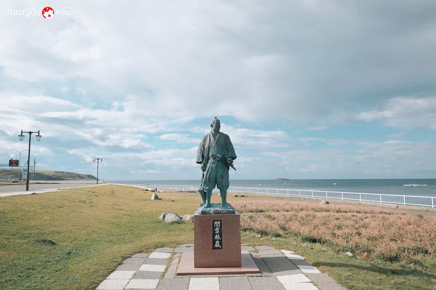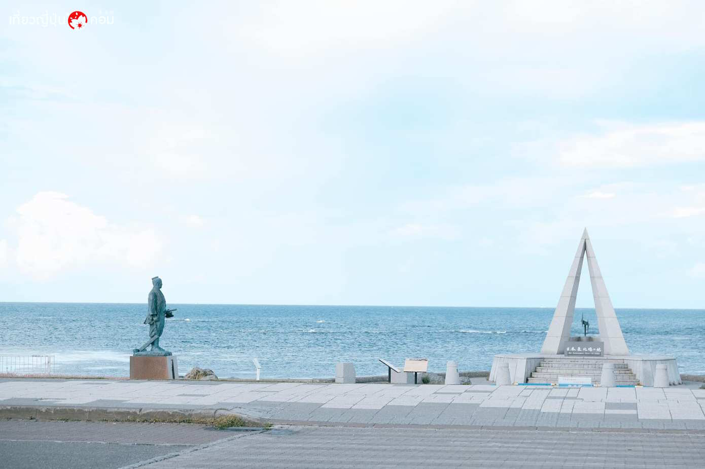 รูปปั้นของ มะมิยะ รินโซ (Mamiya Rinzo) นักสำรวจ ผู้บุกเบิกเกาะซาฮาลิน และ Monument of The Northernmost Point of Japan หรือ สัญลักษณ์ทรงสามเหลี่ยม เครื่องหมายแสดงจุดที่เหนือสุดของประเทศญี่ปุ่น