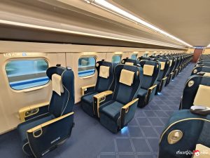 ที่นั่งแบบ Green Car บนขบวน Hokuriku Shinkansen เส้นทาง Kumagaya >> Kanazawa