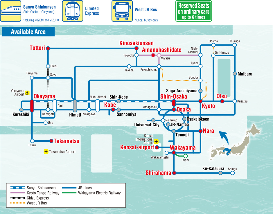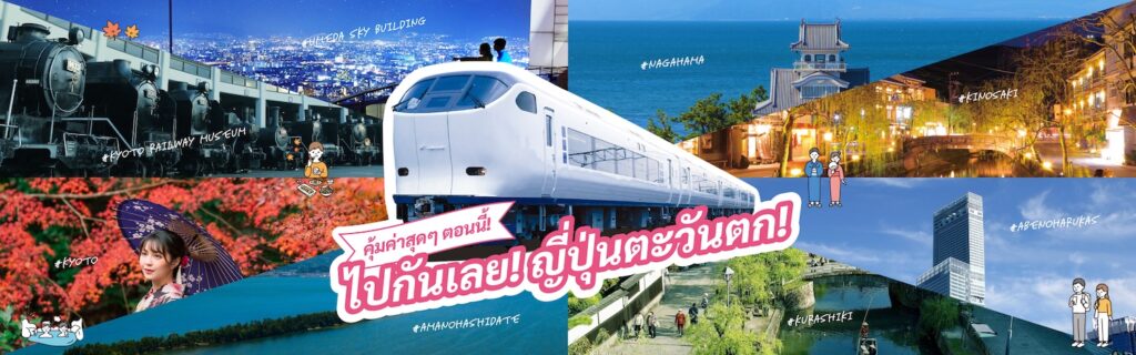 - Kansai Wide Area Pass+Kinosaki Must-Visit Pass 12,300 เยน → 11,300 เยน (Kansai Wide Area Pass ราคาปกติ 10,000 เยน, Kinosaki Must-Visit Pass ราคาปกติ 2,300 เยน *แบบ 3 วัน)
