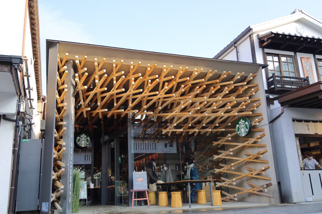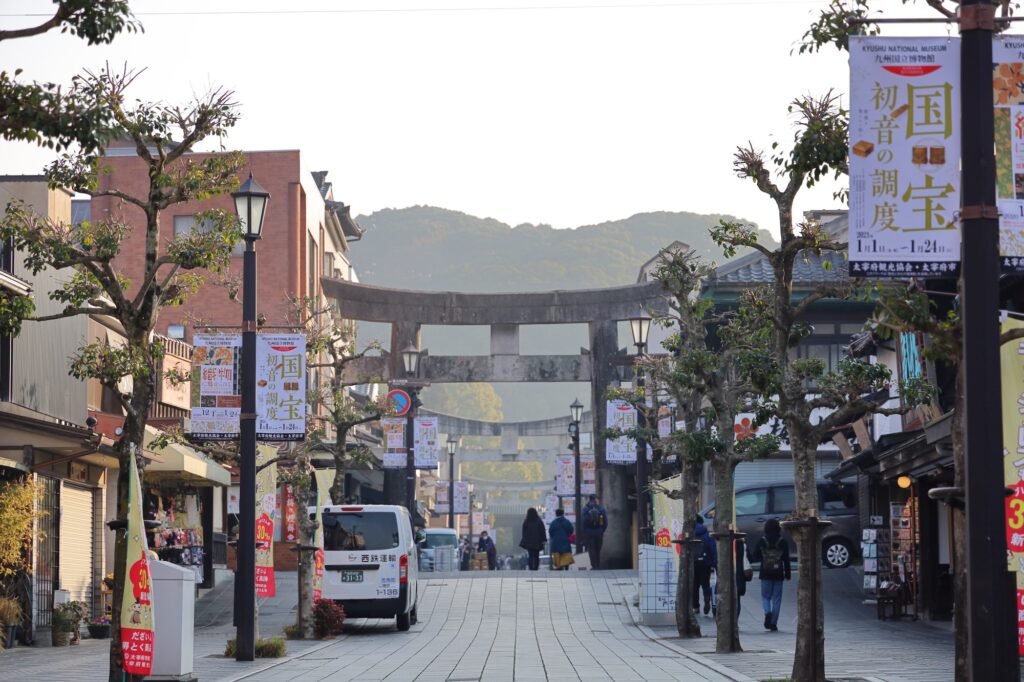 ถนนการค้า Dazaifu Omotesando ด้านหน้าทางเดินเข้าสู่ศาลเจ้า มีร้านค้า ร้านอาหาร ขนม ของฝากมากมายรอให้ละลายทรัพย์อยู่ และแน่นอนว่าอย่าพลาดแวะสตาร์บัคส์สาขาที่ดีไซน์เป็นพิเศษที่นี่ด้วยนะ