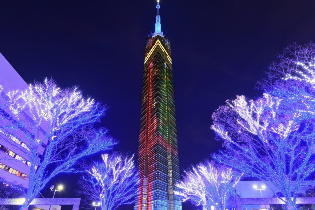 ขากลับจากดาไซฟุ ถ้าเดินทางถึงตัวเมืองฟุกุโอกะแล้วยังพอมีเวลา ก็ขึ้นรถบัสต่อไปเที่ยวที่ ฟุกุโอกะทาวเวอร์ (Fukuoka Tower) ได้ในช่วงเย็น และจะมีไลท์อัพให้ชมในตอนกลางคืนด้วยนะ