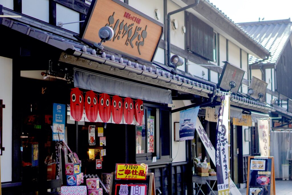ไม่ไกลกันจากตัวปราสาทเป็นที่ตั้งของ Sakura-no-baba Josaien ศูนย์ช้อปปิ้งที่เป็นเอกลักษณ์ ตกแต่งสไตล์ย้อนยุคเพื่อให้เข้ากับบรรยากาศเมืองโบราณ จุดเด่นของที่นี่จะเป็นสินค้าพื้นเมือง ไม่ว่าจะเป็นอาหาร ข้าวของเครื่องใช้ ของฝากต่างๆ และพิพิธภัณฑ์ Wakuwaku ที่บอกเล่าความเป็นมาของเมืองนี้ แนะนำว่าต้องลองชิมโคร็อกเกะสอดไส้อุนิกันด้วย