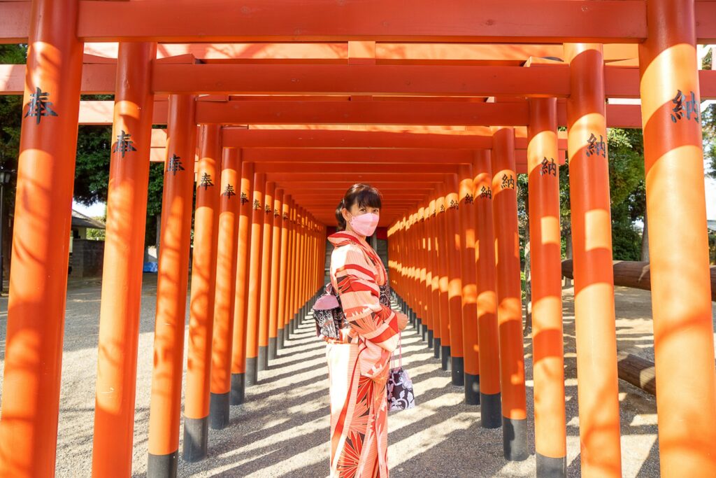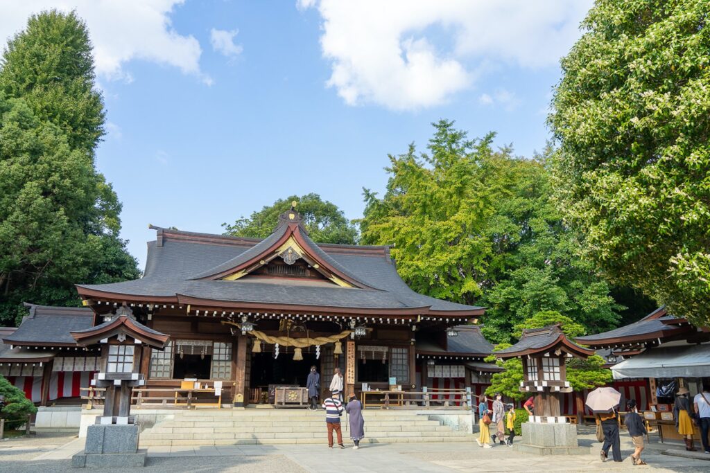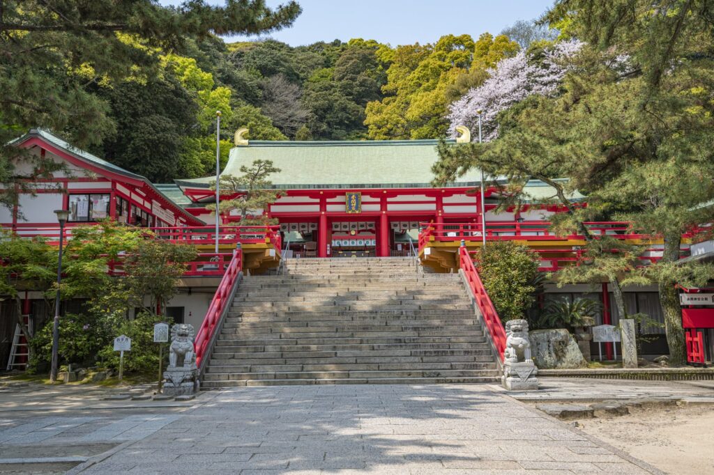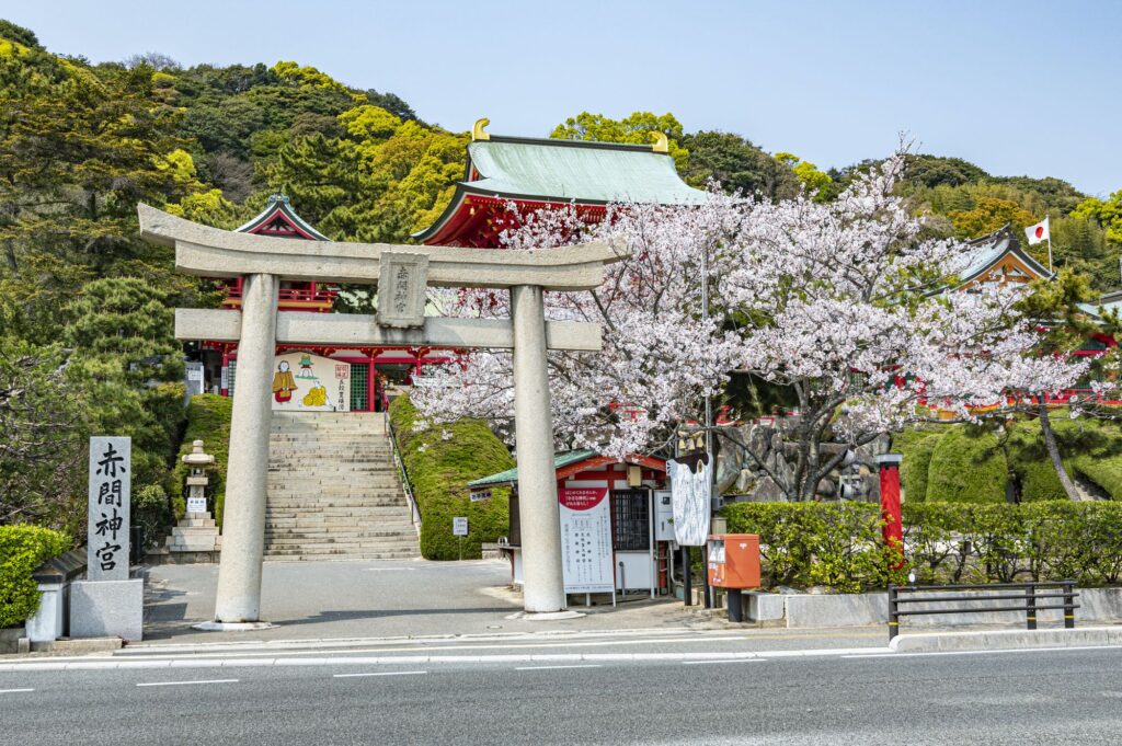 ศาลเจ้าอาคามะจิงงู (Akama jingu shrine) สร้างขึ้นเพื่ออุทิศให้กับจักรพรรดิ์อันโตกุที่จบชีวิตตัวเองจากการจมน้ำในวัยเพียง 8 ขวบเมื่อปีค.ศ.1185 ศาลเจ้านี้มีความงดงามของสีสันที่ตัดกันของกำแพงสีขาวและ ประตูซุยเท็นมงที่มีสีแดงสด ในช่วงวันที่ 2-4 พ.ค. จะมีการจัดงานเทศกาลจักรพรรดิ์ที่เรียกว่า Senteisai