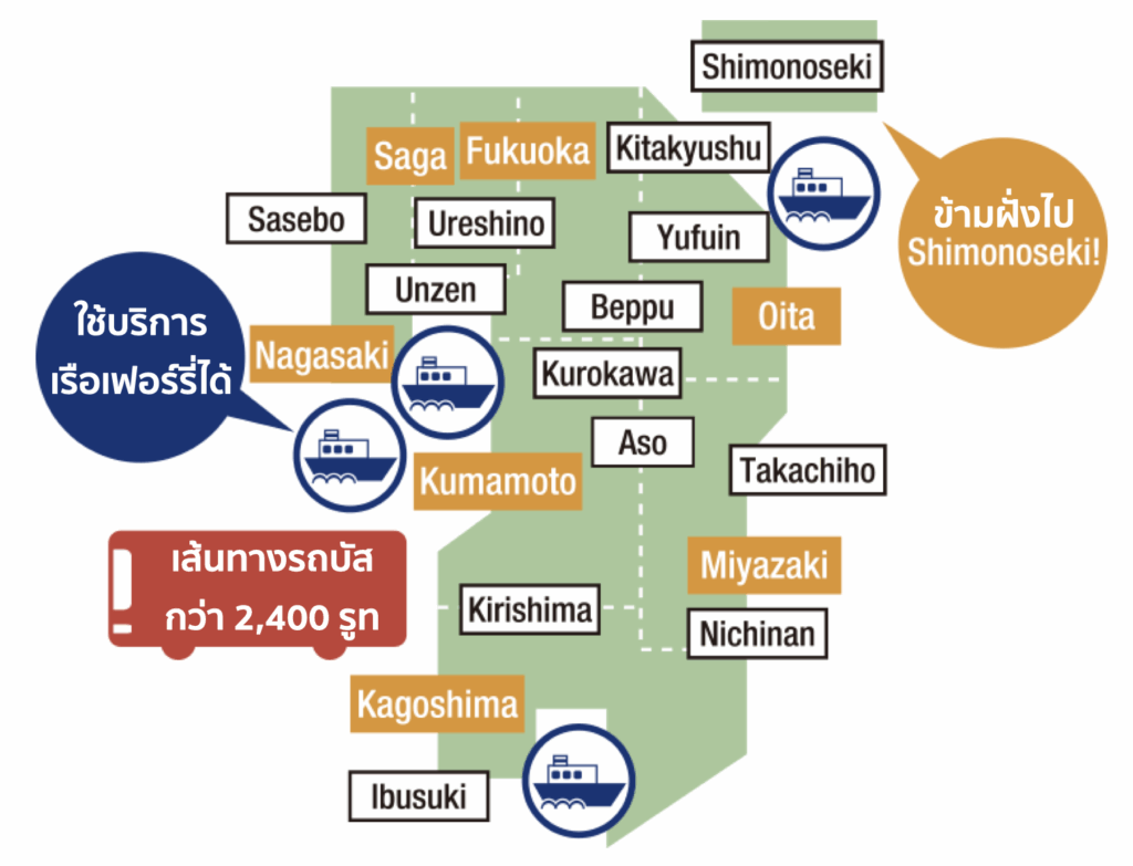 หมายเหตุ: 1,2 และ 4 สามารถใช้เดินทางไป Shimonoseki ได้