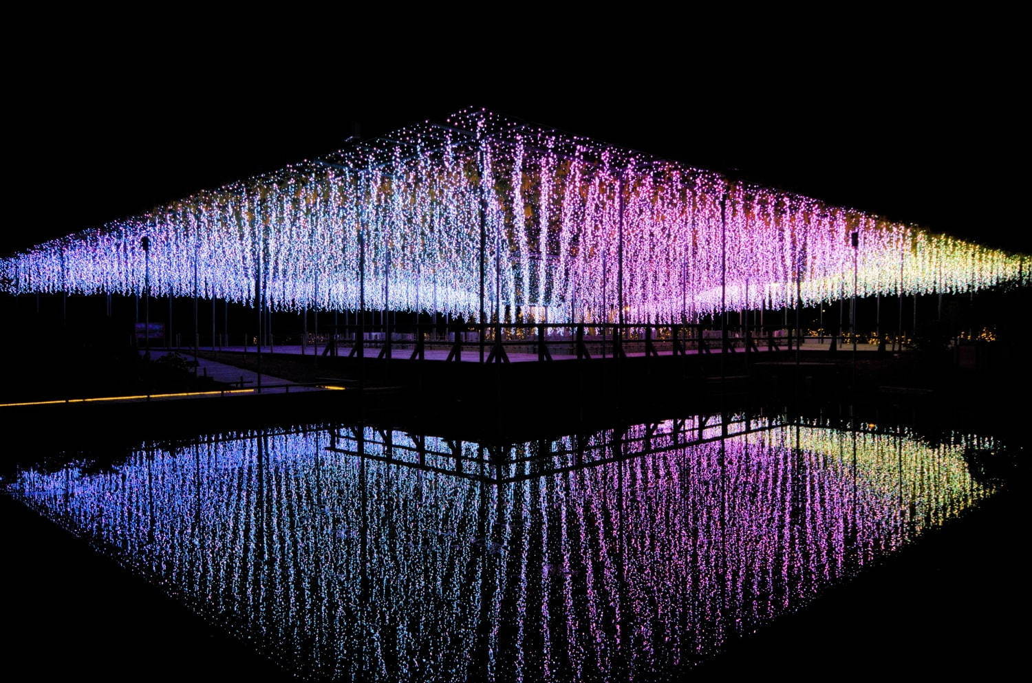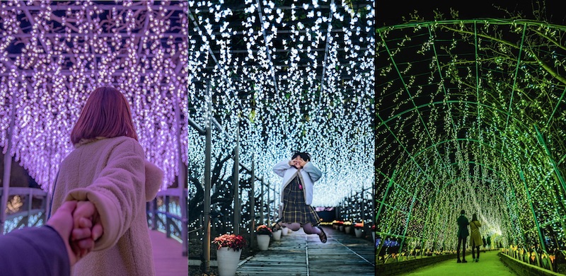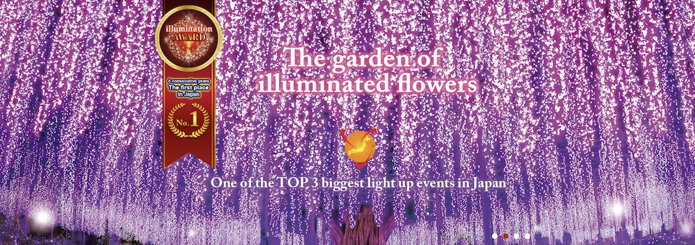 ที่สวนดวกไม้อาชิคางะ มีการจัดการแสดงไฟประดับโดยแบ่งออกเป็น 3 โซน ซึ่งสามารถเห็นดวงไฟที่ประดับได้เป็น 2 เท่าจากเงาบนพื้นผิวน้ำ ยิ่งไปกว่านั้นการจัดการแสดงสวนดอกไม้แฟนตาซีอย่างยิ่งใหญ่งดงามสุดตระการตาโดยการใช้เอฟเฟคที่หลากหลาย ภายใต้การแสดงที่มีชื่อว่า “โลก” ซึ่งหมายความว่าทั้งมนุษย์ทั้งพืชทั้งสัตว์และทุกอย่างนั้นได้ถูกหล่อหลอมรวมให้เป็นอันหนึ่งอันเดียวกัน