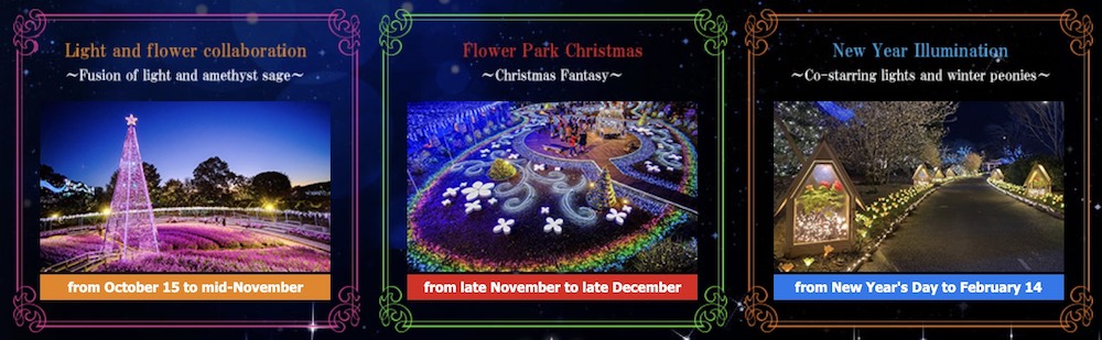 ในภูมิภาคคันโตมีการประดับดวงไฟที่มีชื่อเสียงเป็นอย่างมากถึง 3 แห่งด้วยกัน ซึ่ง 1 ในนั้นคือ Flower Fantasy สวนดอกไม้แฟนตาซีประดับไฟที่ สวนดอกไม้อาชิคางะ (Ashikaga Flower Park) ที่เป็นสวนดอกไม้ที่ขึ้นชื่อในการไปชมดอกวิสทีเรียช่วงฤดูใบไม้ผลินั่นเอง ทั้งนี้ในการจัดการแสดงปีนี้เป็นครั้งที่ 23 แล้ว ยังได้รับการคัดเลือกจากองค์กรทิวทัศน์ว่าให้เป็นหนึ่งในงานประดับไฟที่ดีที่สุดของญี่ปุ่นอีกด้วย