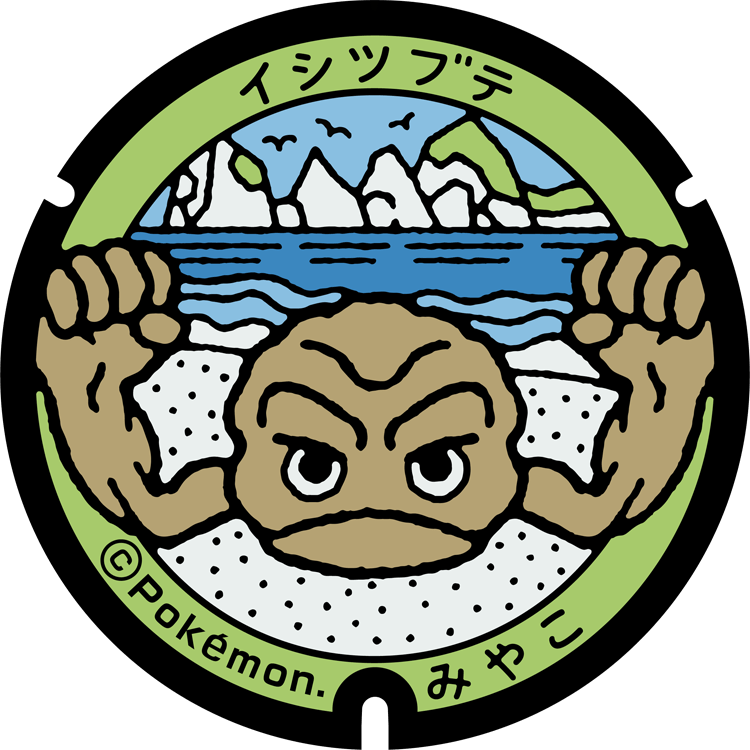 หลังจากนั้นก็ได้พบกับฝาท่อโปเกมอนลาย Shuckle (หรือ สึโบะสึโบะ) ที่เมืองโอซุจิ จังหวัดอิวาเตะ อีกหนึ่งเมืองที่ได้รับผลกระทบรุนแรงจากเหตุการ์ณแผ่นดินไหวเมื่อปี 2011 อีกทั้งชื่อของเมืองอิวาเตะ มาจากคันจิ 2 คำคือคำว่า อิวะ (岩) ที่แปลว่าหิน และ เตะ (手) ที่แปลว่ามือ นั่นก็เป็นเหตุผลที่ ฝาท่อโปเกมอนหิน Geodude (หรือ อิชิสุบุเทะ) จึงปรากฎขึ้นที่จังหวัดนี้เช่นกัน
