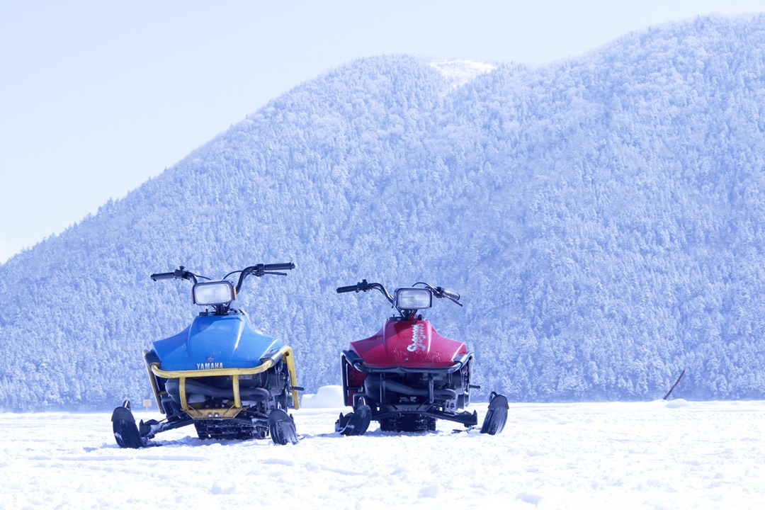 SNOW MOBILE ตั้งแต่เวลา 9.00-16.00 น. (2 กม. 2,000 เยน / 1 กม. 1000 เยน)