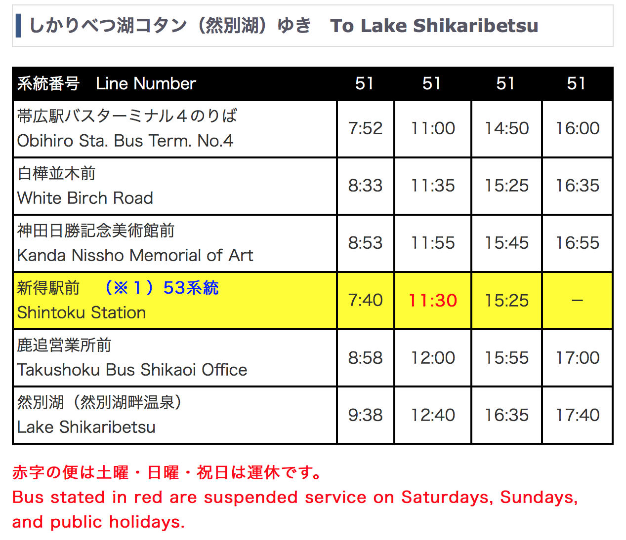 วิธีการเดินทาง จากสถานี Obihiro โดยสารรถบัสมาที่ Shikaribetsu Onsen (ไปกลับ 2,900 เยน) ดูรายละเอียด >> ที่นี่