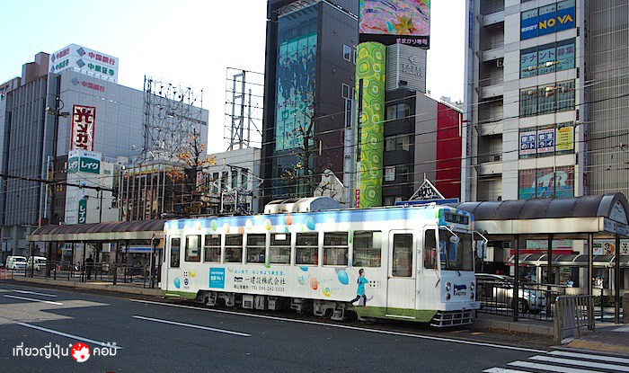 สำหรับการเดินทางภายในตัวเมือง เราสามารถเดินทางได้ด้วยรถรางโบราณ Okaden ที่มีอายุเก่าแก่กว่า 100 ปี ปัจจุบันได้ปรับปรุงใหม่อยู่ในสภาพที่ดีและใช้การได้ด้วยระบบที่ทันสมัย มีให้บริการด้วยกัน 2 สาย คือ สาย Higashiyama และสาย Sekibashi
