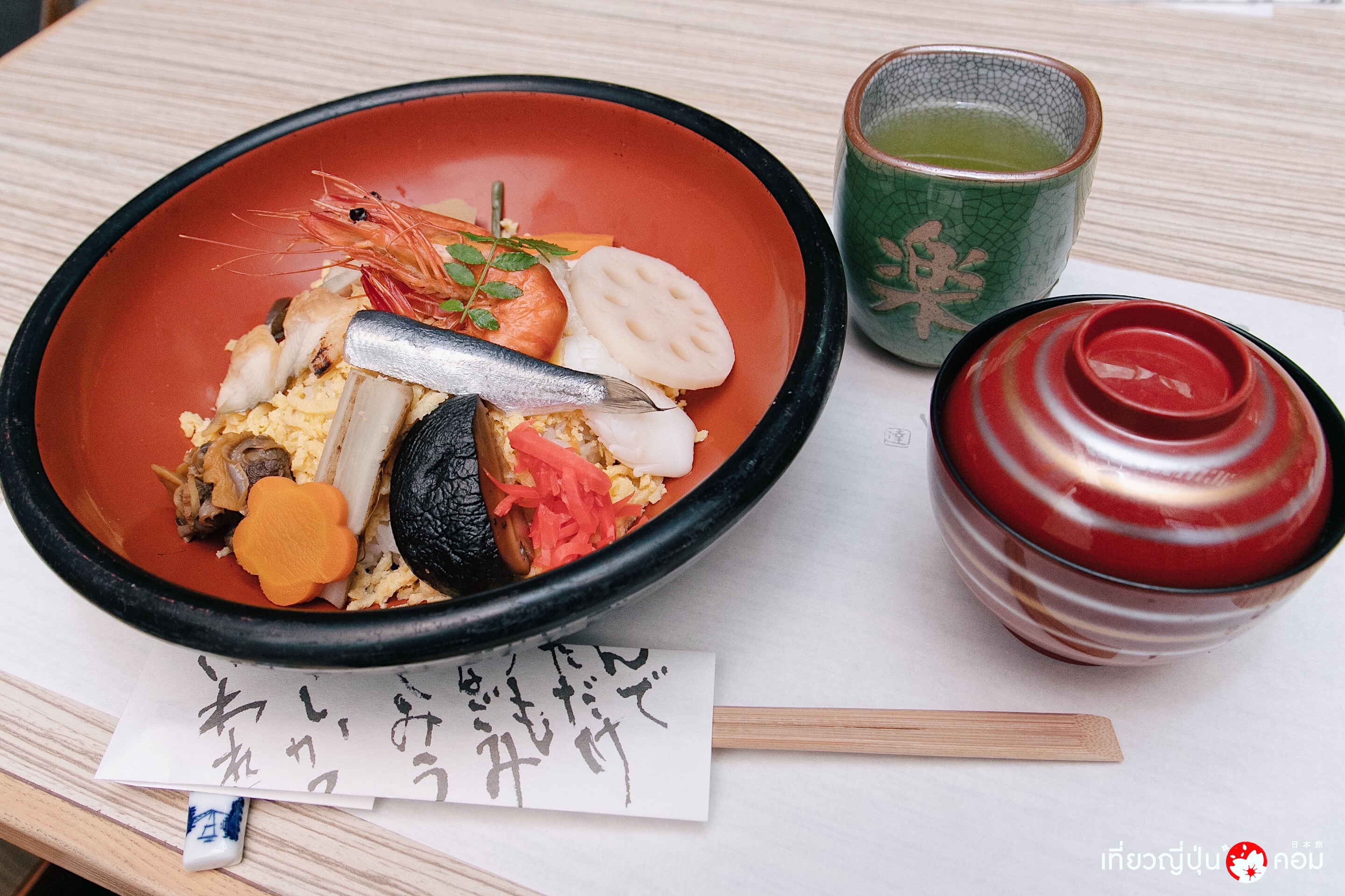 “บะระซูชิ” (Bara Sushi) ข้าวหน้าปลาดิบสไตล์โอคะยะมะ ถึงจะเรียกว่าซูชิ แต่ไม่เหมือนแบบที่เราคุ้นเคยกัน เพราะ “บะระซูชิ” จะเสิร์ฟวัตถุดิบท้องถิ่น ปลาดิบ กุ้ง หอย ผักดอง และเห็ดชิตาเกะ โปะลงบนข้าวเป็นจาน ทำให้มีความแตกต่างไปจากซูชิหน้าปลาดิบทั่วไป รสชาติก็จะมีทั้งเปรี้ยวและหวาน เป็นอะไรที่แปลกใหม่ดี แนะนำร้าน Kidoairaku เดินจากสถานี Okayama ได้
