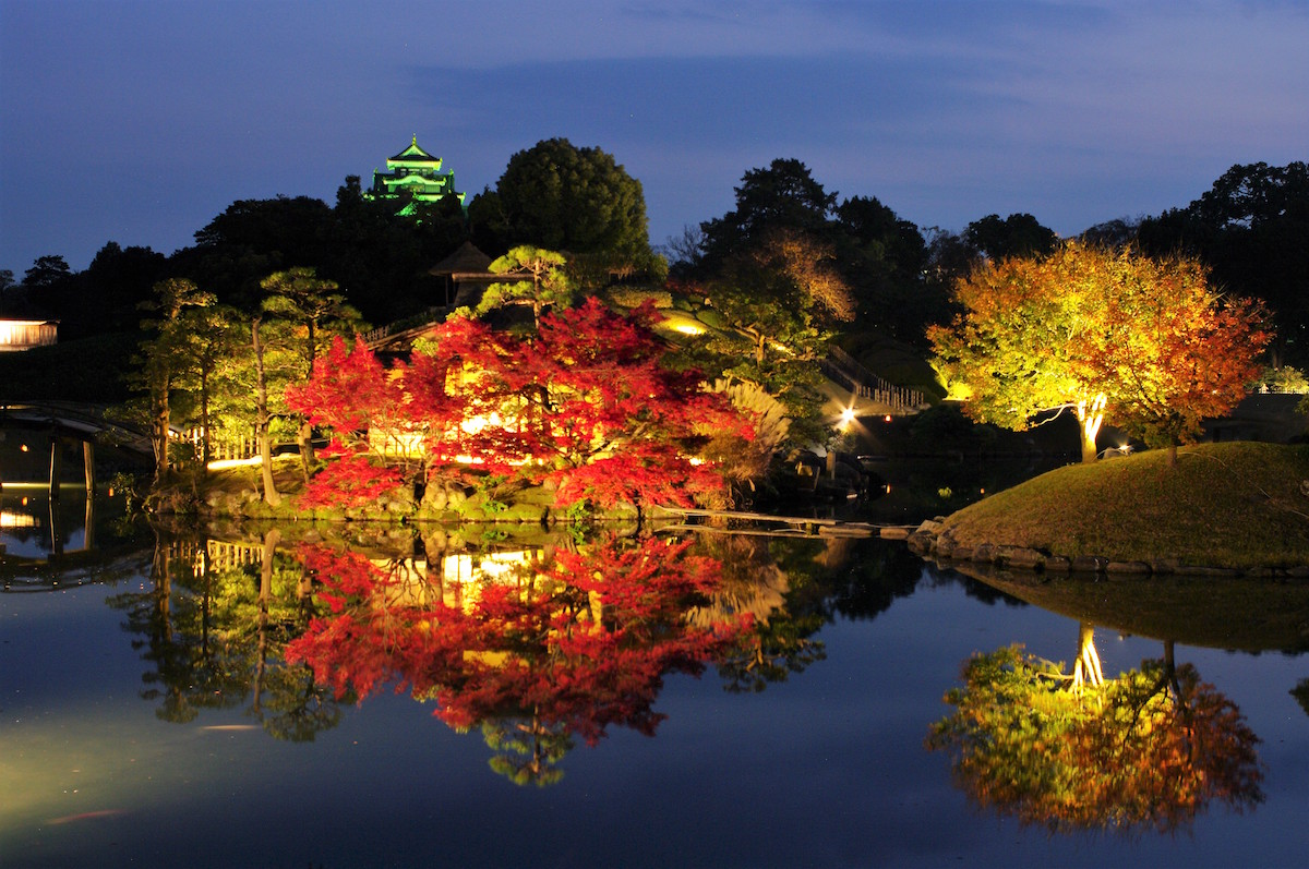 สวนโคราคุเอ็น (Korakuen) เป็นหนึ่งในสวนที่มีภูมิทัศน์ที่สวยงามและเป็นแหล่งท่องเที่ยวหลักของจังหวัดโอคายามะ โดยสวนแห่งนี้ได้รับการจัดอันดับให้เป็น 1 ใน 3 สวนที่สวยที่สุดของญี่ปุ่น สามารถมองเห็นปราสาทโอคายามะได้จากสวนแห่งนี้ และเป็นสถานที่ที่เหมาะแก่การชมใบไม้เปลี่ยนสีใบไม้จะสลับกันผลัดเปลี่ยนสีสันสวยงาม เริ่มตั้งแต่ช่วงกลางเดือนตุลาคม จนถึง ต้นธันวาคม