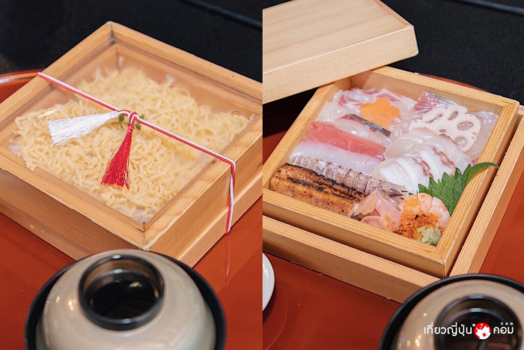 “คะเอชิซูชิ” (Kaeshi Sushi) ข้าวหน้าปลาดิบที่มีกิมมิคในการเสิร์ฟไม่เหมือนใคร โดยพนักงานจะคว่ำจานอาหารมาก่อน ให้เราเห็นแค่ไข่หวานที่ปูลองพื้นของภาชนะไว้ (ก้นของจานเป็นพลาสติกใส) เมื่อจะรับประทานจึงค่อยพลิกกลับมาอีกด้านหนึ่ง แล้วเปิดฝาออก ก็จะเห็นเป็นหน้าปลาดิบต่างๆสุดอลังการ โปะลงบนข้าวสวย น่ากินสุดๆ