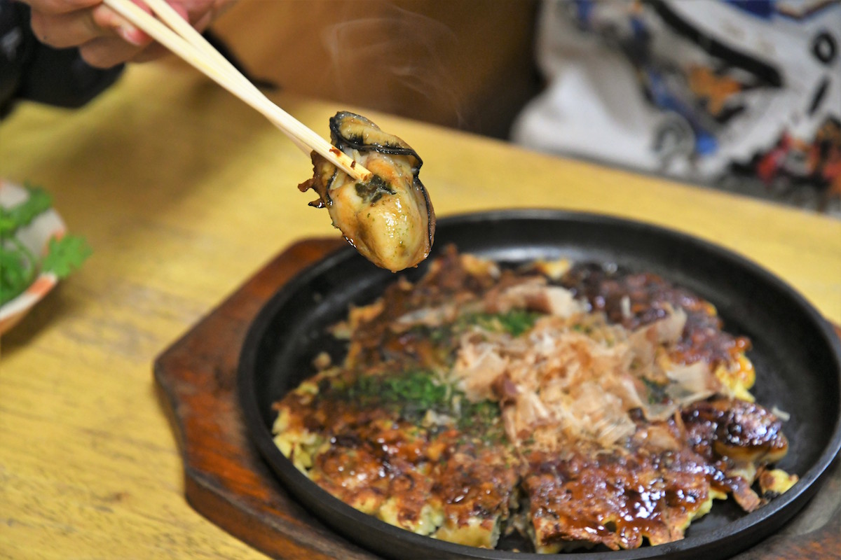 “คะคิโอโคะ” (Kakioko) โอโคโนมิยากิที่ใช้วัตถุดิบท้องถิ่นคุณภาพเยี่ยมอย่าง หอยนางรมโอคะยะมะ ขนาดใหญ่ทานคู่กับมีซอสหวาน อร่อยลงตัวและมีคุณค่าโภชนาการสูง ร้านแนะนำคือ Okonomiyaki Moriเดินจากสถานี Okayama ได้