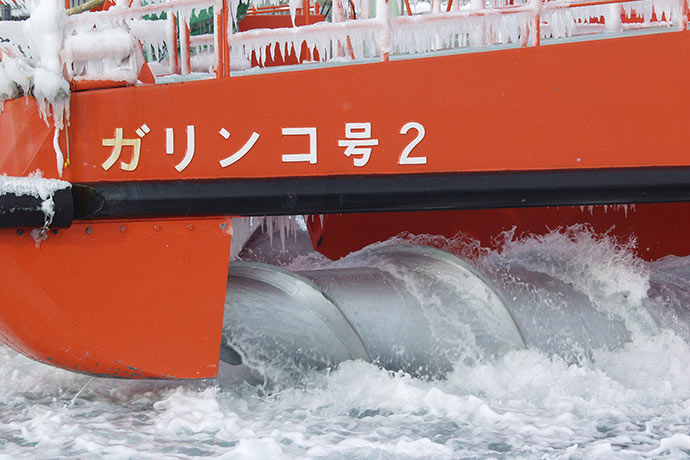 เมื่อน้ำเเข็งเกาะตัวกันแน่น เรือ Garinko-go หมายเลข 2 จะใช้สว่านเจาะน้ำแข็งขนาดใหญ่เพื่อให้เรือสามารถล่องต่อไปได้ เป็นส่วนประกอบที่เรียกได้ว่าเป็นไฮไลท์ของเรือ สามารถชมการเจาะน้ำเเข็งอย่างใกล้ชิดได้ที่บริเวณชั้นล่าง ตรงส่วนของห้องโดยสารด้านหน้า