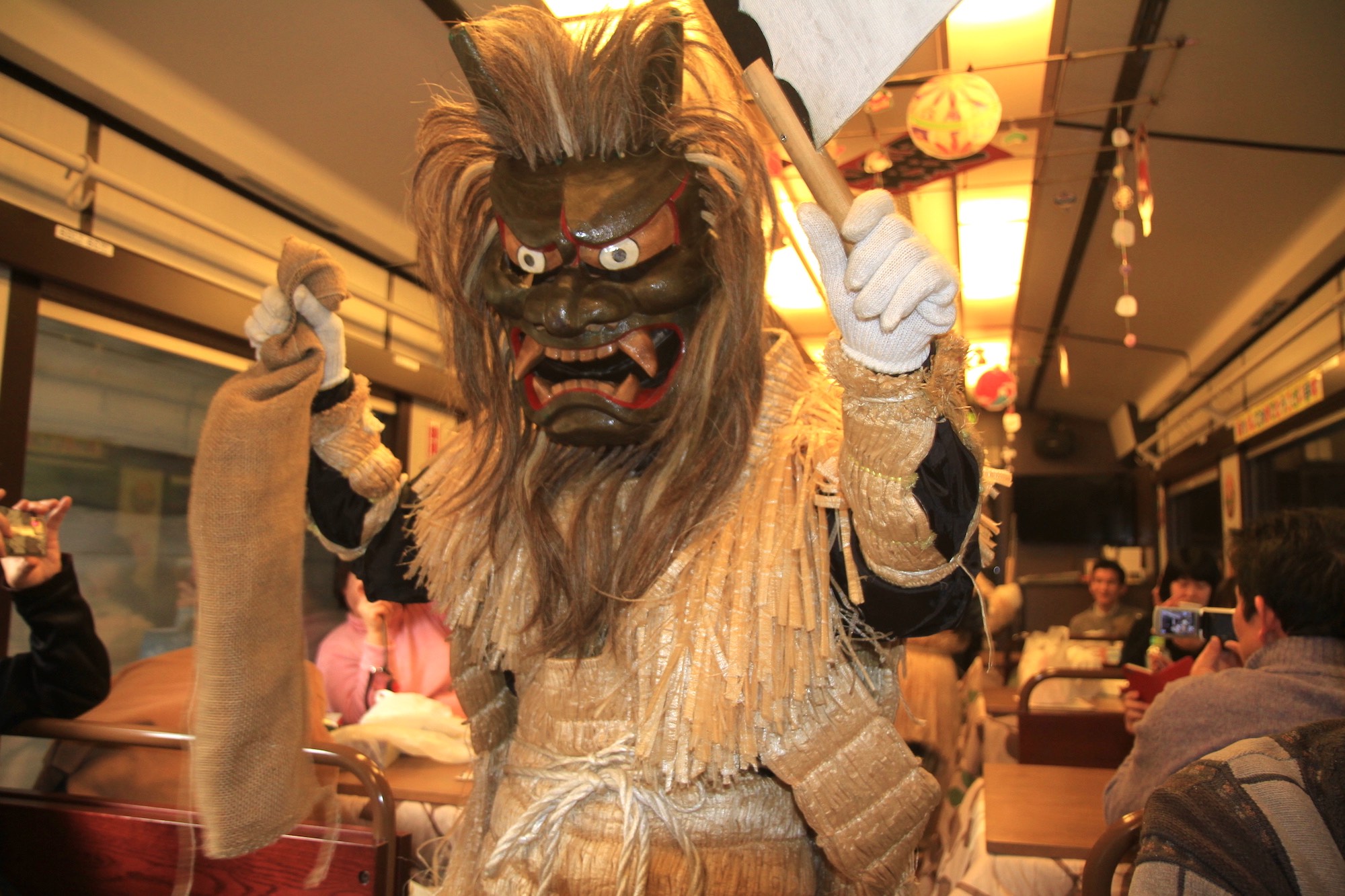 อีกหนึ่งไฮไลท์ของรถไฟขบวนนี้คือ จะมี Namomi หรือเรียกอีกชื่อหนึ่งว่า Namahage ซึ่งเป็นผู้รับใช้เทพ ปรากฏตัวออกมาในรถไฟ เพื่อขับไล่คนเกียจคร้าน ไม่ว่าใครเห็นก็ต้องร้องว้าวออกมาด้วยความตกตะลึงกับความยิ่งใหญ่นี้