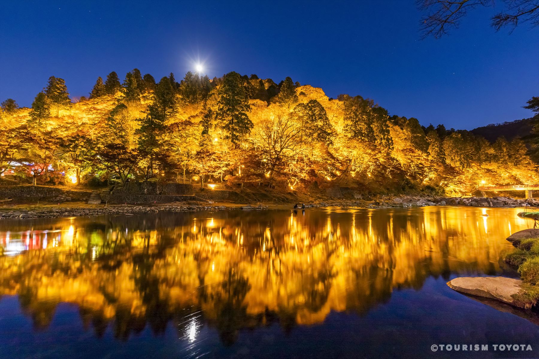 หากมีโอกาสแวะมาที่เมืองโตโยต้าในช่วงฤดูใบไม้ร่วง “โครันเค” เป็นอีกหนึ่งสถานที่ชมใบไม้เปลี่ยนสีที่ไม่อยากให้พลาด “โครันเค” เป็นลำธารประมาณ 1 กิโลเมตรในแม่น้ำโทโมเอะและตั้งอยู่ในเขตอุทยานแห่งชาติไอจิโคเก็น ภาพพื้นหลังที่มีภูเขาและแม่น้ำที่สวยงาม แต่งแต้มสีสันด้วยต้นเมเปิ้ลและต้นสนกว่า 4000 ต้น