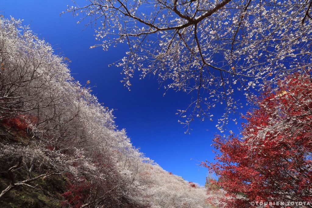 ทิวทัศน์ที่สามารถชมซากุระและใบไม้เปลี่ยนสีได้ในเวลาเดียวกัน ซึ่งหาชมได้แค่ที่นี่เท่านั้น สถานที่ๆ ว่านั้นก็คือ โอบาระ ตั้งอยู่ในเมืองโตโยตะ (Toyota) จังหวัดไอจิ ในช่วงประมาณเดือนพฤศจิกายนของทุกปีจะสามารถชมความสวยงามของซากุระและใบไม้เปลี่ยนสีพร้อมๆ กันได้