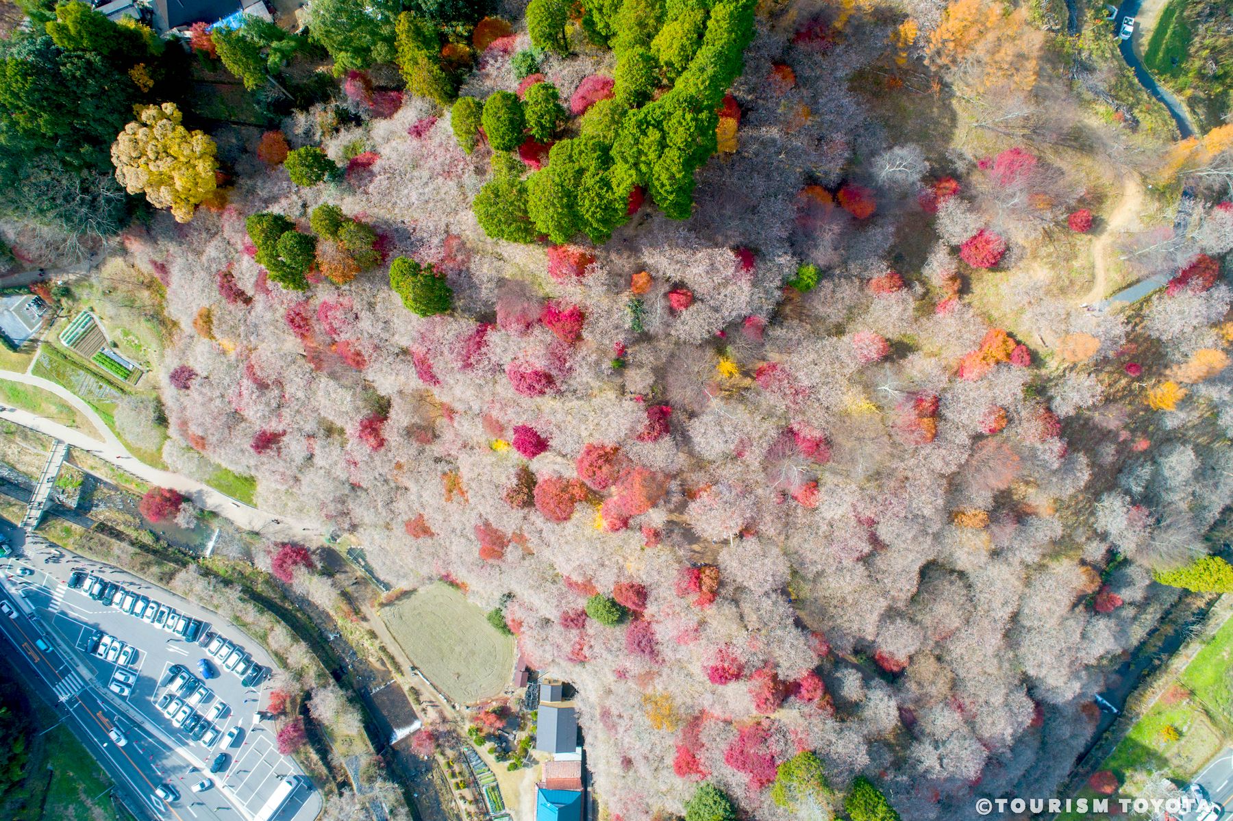 อยากไปเห็นให้ได้สักครั้งในชีวิต! ทิวทัศน์ของซากุระและใบไม้เปลี่ยนสีในเวลาเดียวกันที่สวยงามแปลกตา เมือง Toyota จ.ไอจิ