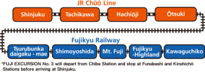 - Fuji Excursion 81 (ขาไป) ออกจากสถานี Shinjuku เวลา 9.02 น. ถึงสถานี Kawaguchiko เวลา 11.07 น.