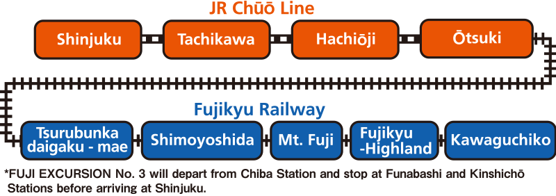 JR ร่วมกับ Fujikyu เปิดตัวรถไฟขบวนพิเศษชื่อว่า Fuji Excursion ที่จะทำการวิ่งตรงจากโตเกียว สู่ คาวากุจิโกะ ในเดือนมีนาคม 2019 และได้กลับมาให้บริการอีกครั้งในปี 2023