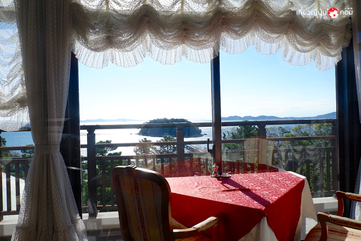 จากห้องอาหารสามารถมองเห็นเกาะ Takeshima ได้อย่างชัดเจน
