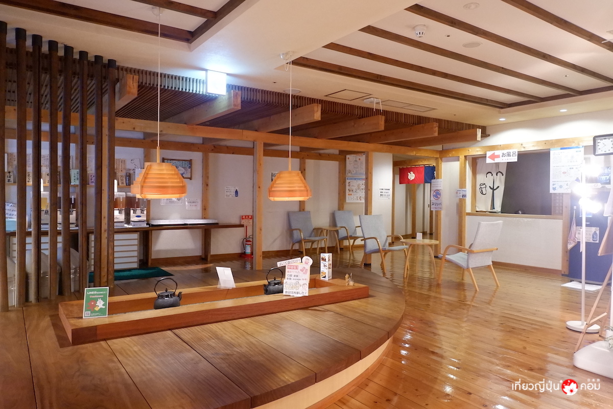 บริเวณ Relaxing Zone ก่อนเข้าสู่ตัวอนเซน ด้านข้างหลังยังมีชาให้ดื่มฟรีถึง 6 ชนิด