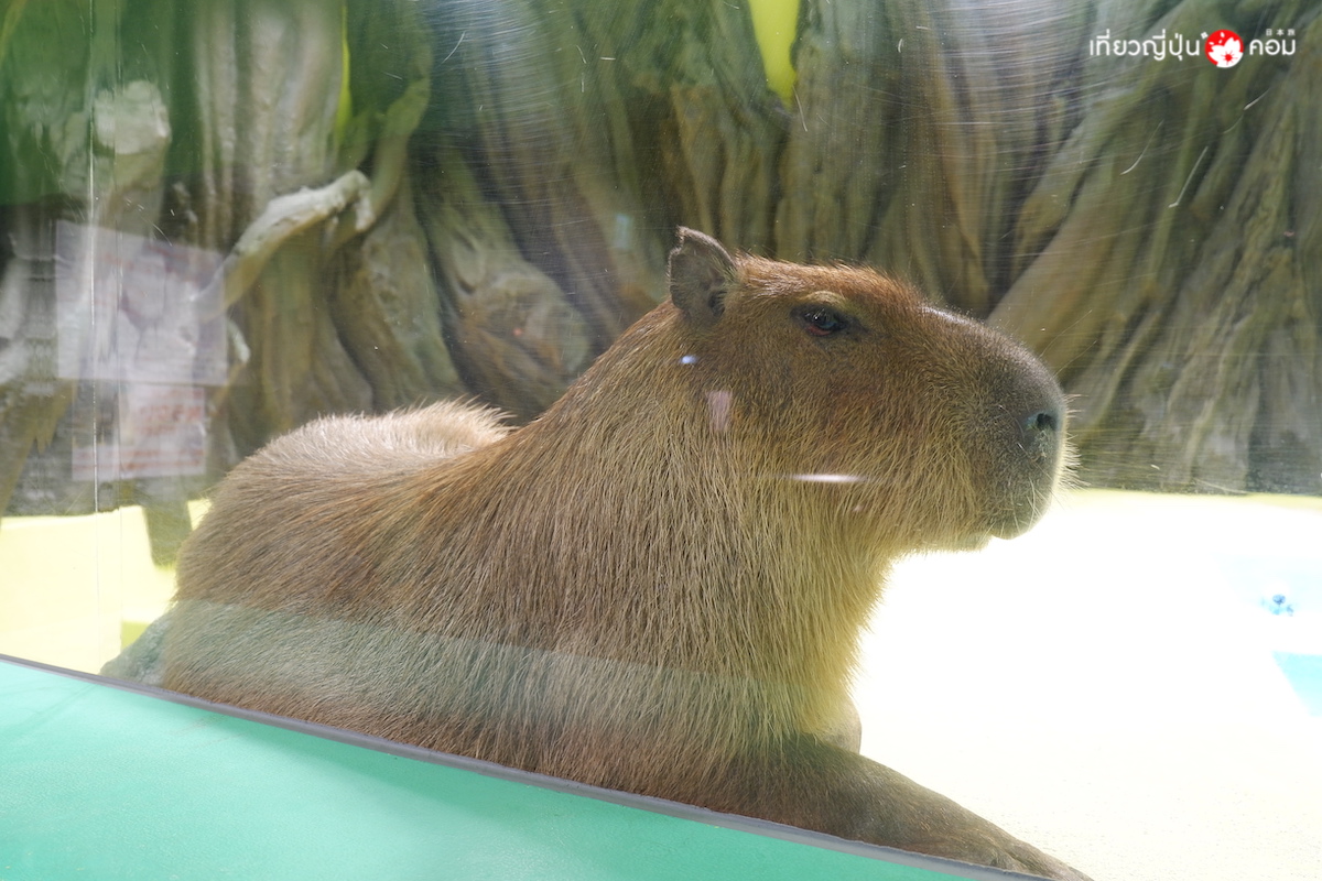 นอกจากสัตว์น้ำแล้วยังมีสัตว์บกอีกด้วย นั่นก็คือเจ้าคาปิบารา ขวัญใจเด็กๆ