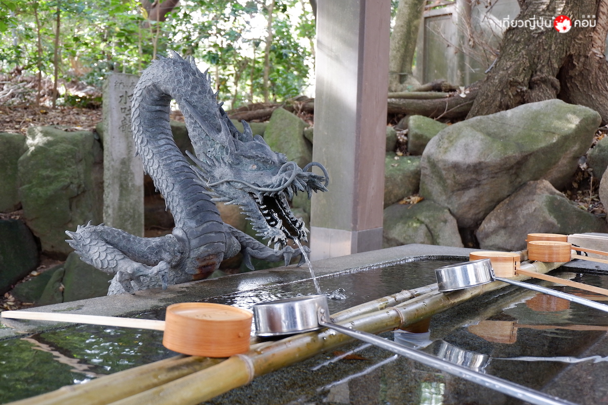 ตามธรรมเนียมเมื่อมาถึงศาลเจ้าแล้วจะต้องล้างมือ บ้วนปากเพื่อให้พร้อมจะไปขอพรเทพเจ้า