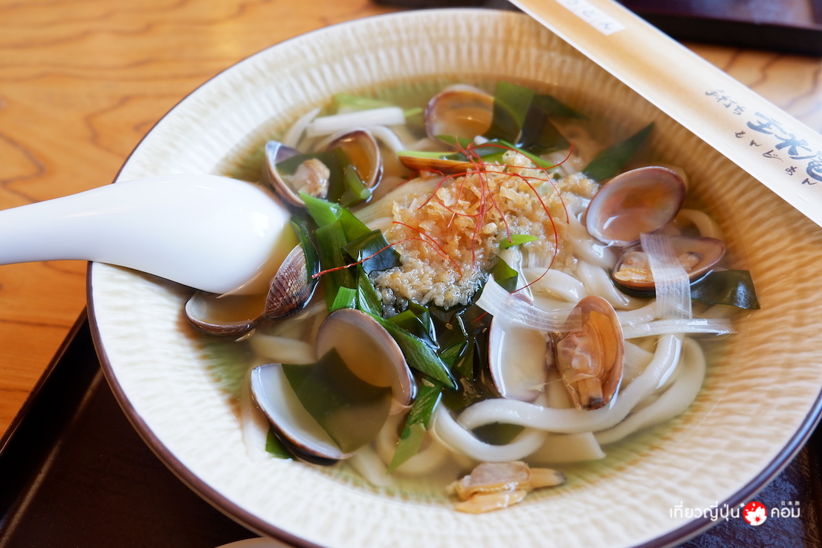 อุด้งเส้นเหนียวนุ่ม พร้อมน้ำซุปใสรสชาติกลมกล่อม พร้อมหอยอาซาริจากอ่าวมิคาวะ
