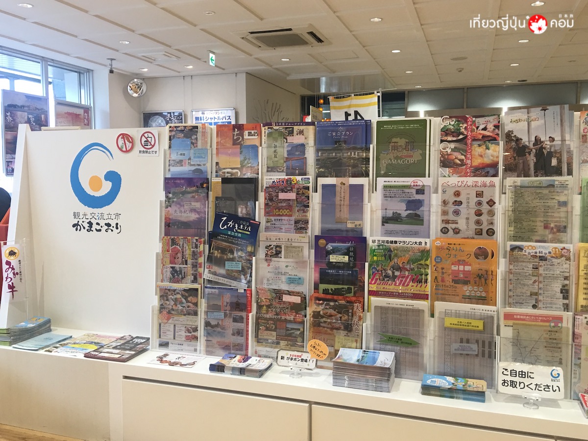 จากสถานี Nagoya เราโดยสารรถไฟ JR สาย Tokaido มาลงที่สถานี Gamagori ใช้เวลาประมาณ 45 นาที ที่สถานี Gamagori เราสามารถไปขอข้อมูลการท่องเที่ยวได้ที่ ศูนย์ให้ข้อมูลการท่องเที่ยวของเมืองกามาโกริ หรือศึกษาข้อมูลการท่องเที่ยวเพิ่มเติมได้ >> ที่นี่