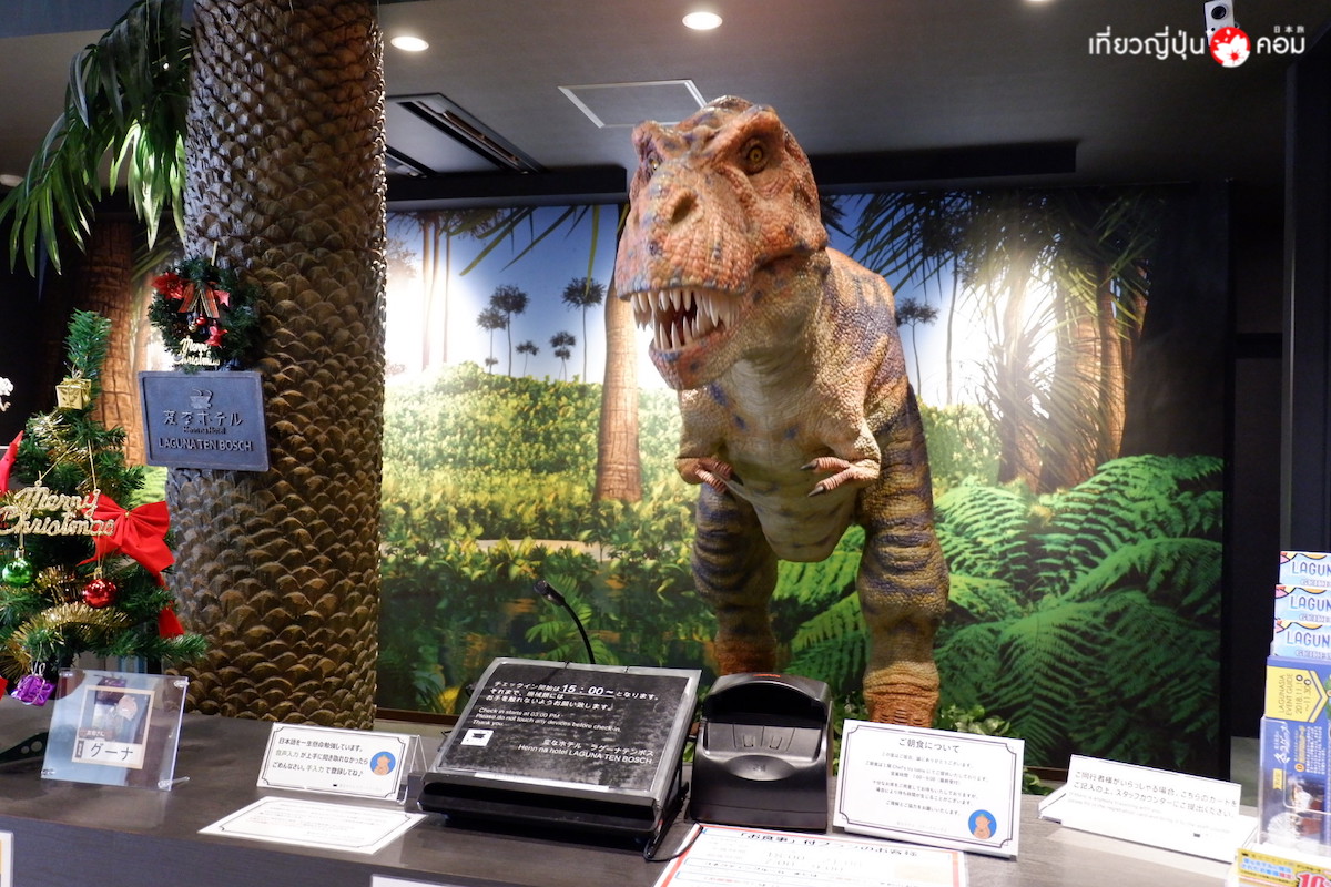 ความพิเศษของโรงแรมนี้ที่นอกจากจะมีห้องพักอันแสนสบายสะอาดและมีสิ่งอำนวยความสะดวกจำเป็นต่างๆ ครบครันแล้ว พนักงานต้อนรับของที่นี่ไม่ใช่มนุษย์ทั่วๆไปเหมือนโรงแรมอื่น เพราะเค้าใช้เจ้าหุ่นยนต์ไดโนเสาร์เป็นพนักงานต้อนรับ สามารถช่วยเราเช็คอิน เช็คเอ้าท์ได้