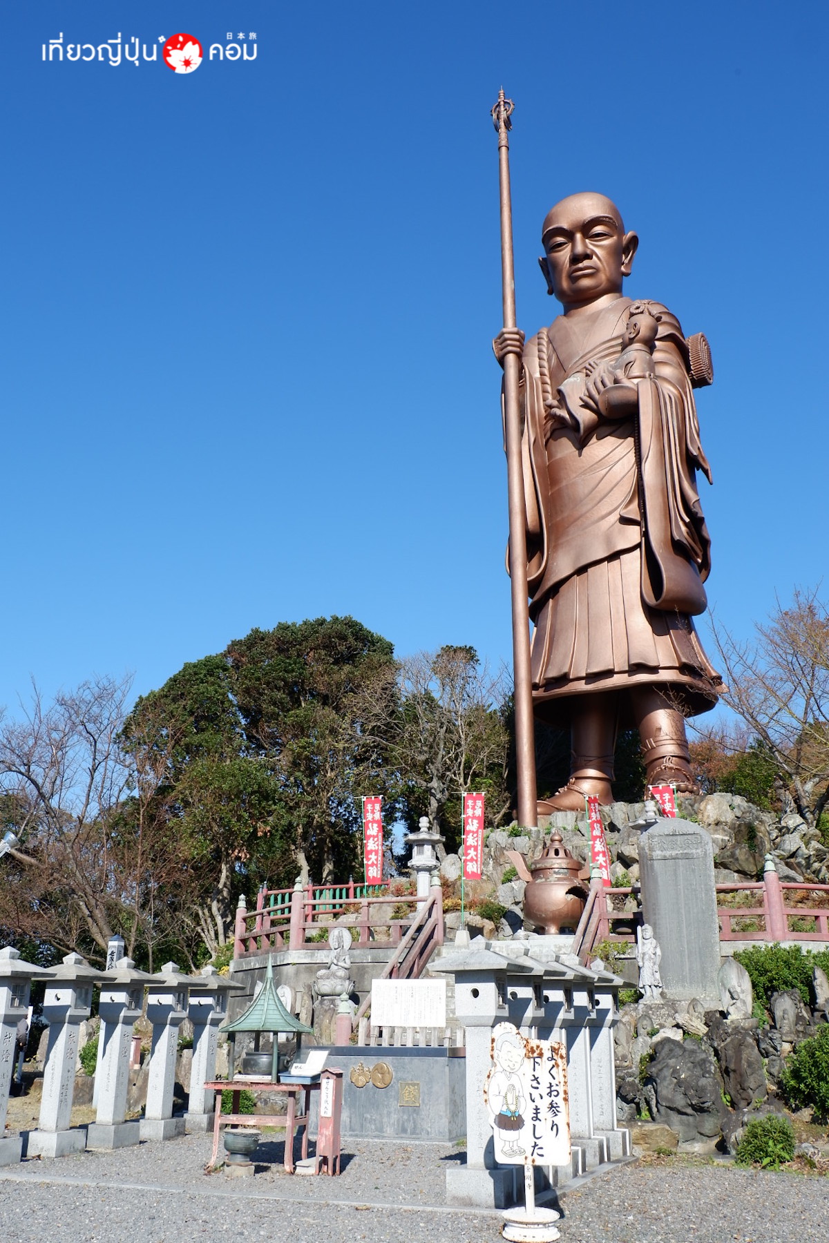 รูปปั้นของโคยาสุ ไทชินั้นทำจากเหล็กคอนกรีต มีความสูงประมาณ 30 เมตร สร้างขึ้นโดยบุคคลผู้มีชื่อเสียงในเมืองนาโงยะ โดยบุคคลท่านนี้ได้ทำการอธิษฐานเพื่อขอบุตรที่วัดแห่งนี้ เมื่อคำอธิษฐานสำเร็จผล ท่านจึงสร้างรูปปั้นของท่านโคยาสุ ไทชิ เพื่อเป็นการตอบแทน ปัจจุบันจะเห็นผู้คนเดินทางมากราบไหว้กันมากมายเพื่อขอให้มีบุตรและช่วยให้การคลอดบุตรได้อย่างปลอดภัย