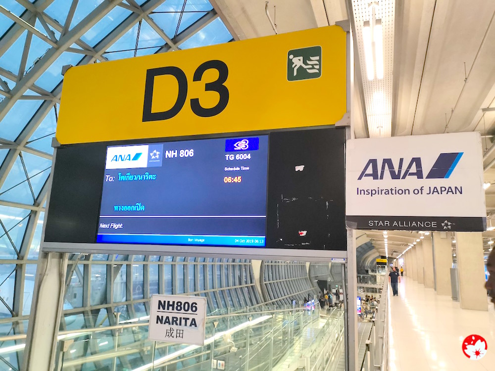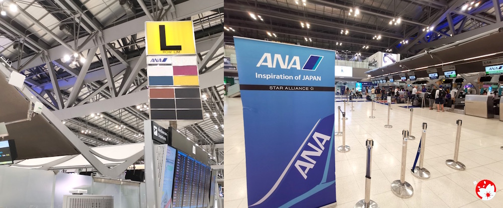 สำหรับเที่ยวบินของเราในวันนี้ เป็นเที่ยวบินเช้า ออกเดินทางจากสนามบินสุวรรณภูมิ สายการบิน ANA ต้องเข้ามาเช็คอินที่ ROW L