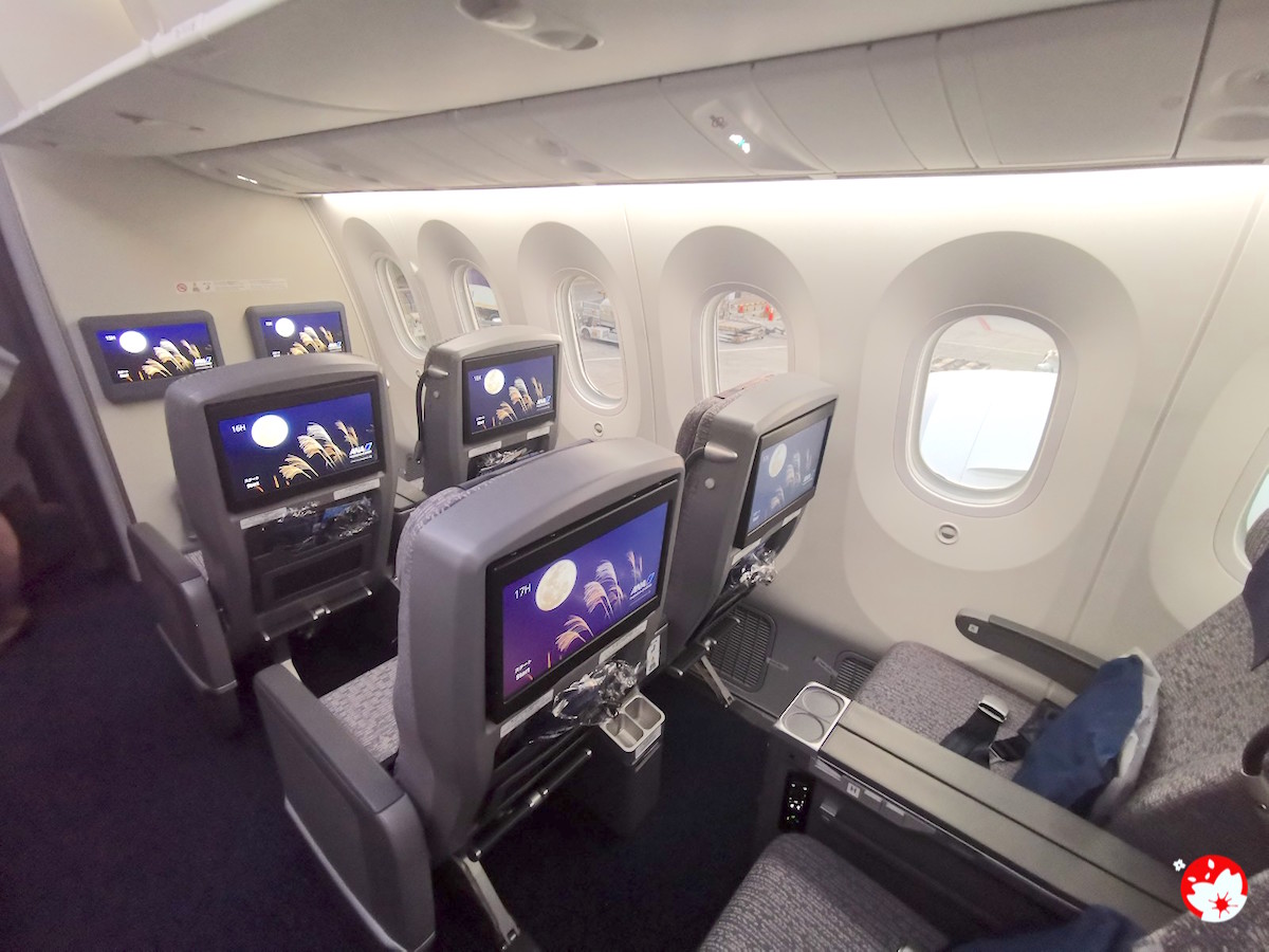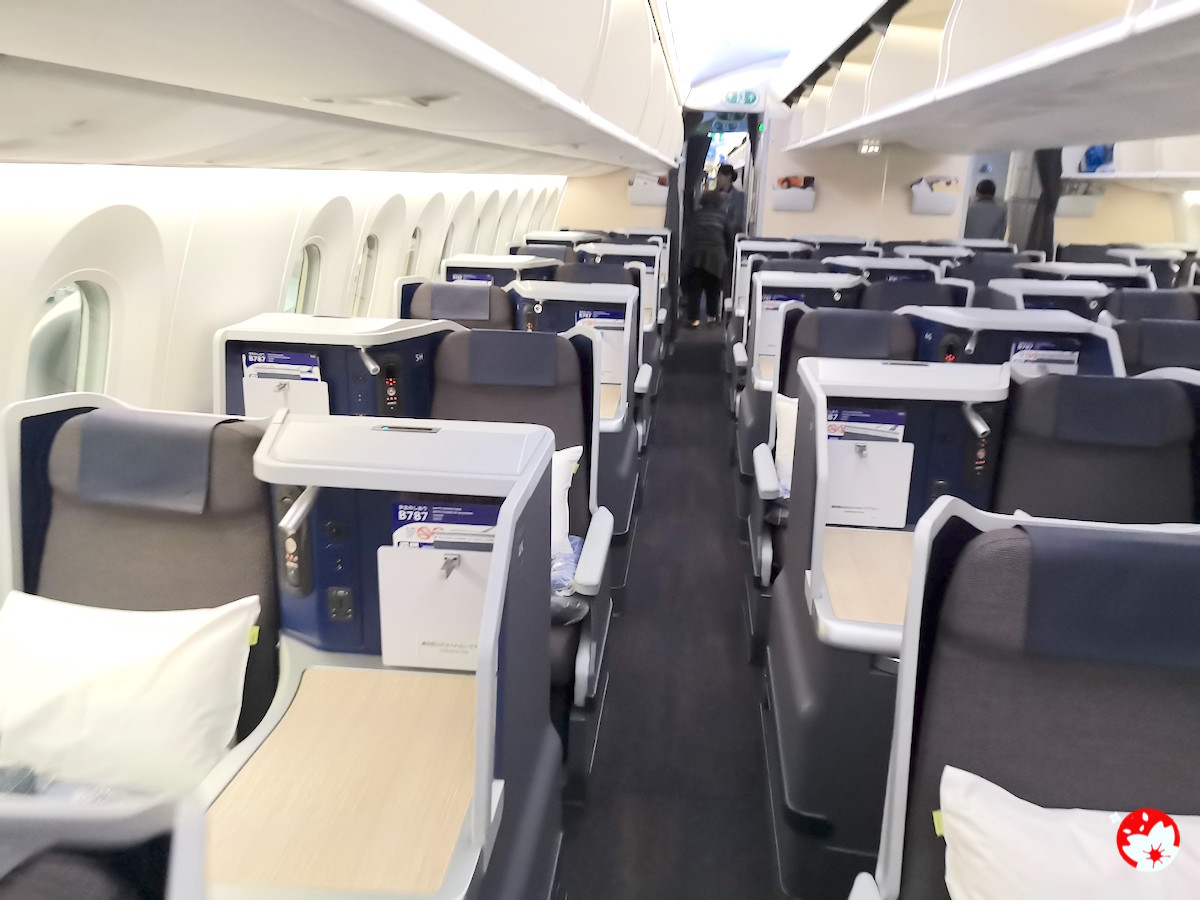 ภายในเคบินดูเรียบหรู สะอาดตามาก แบ่งออกเป็นโซนที่นั่งชั้นธุรกิจ (Business Class), ชั้นประหยัดพรีเมียม (Premium Economy) และ ชั้นประหยัดธรรมดา (Economy) ดูรายละเอียดผังที่นั่งได้ที่นี่ >> ANA B787-10