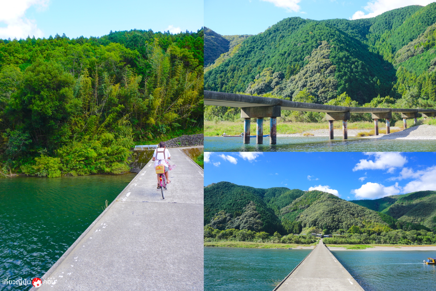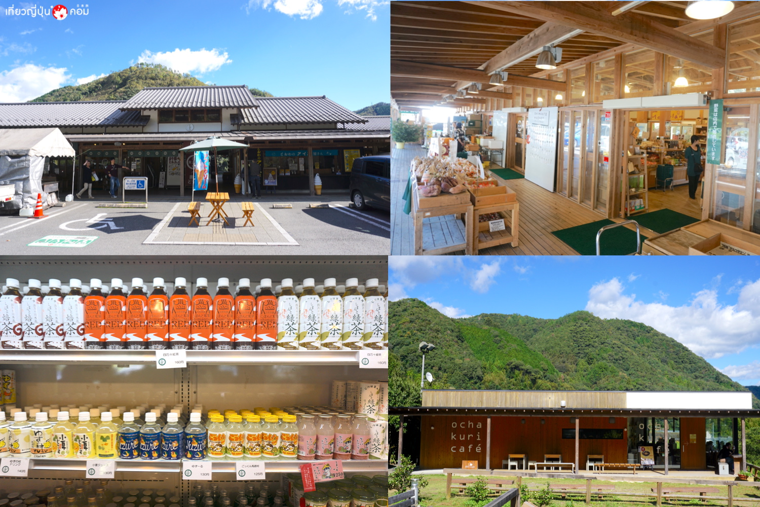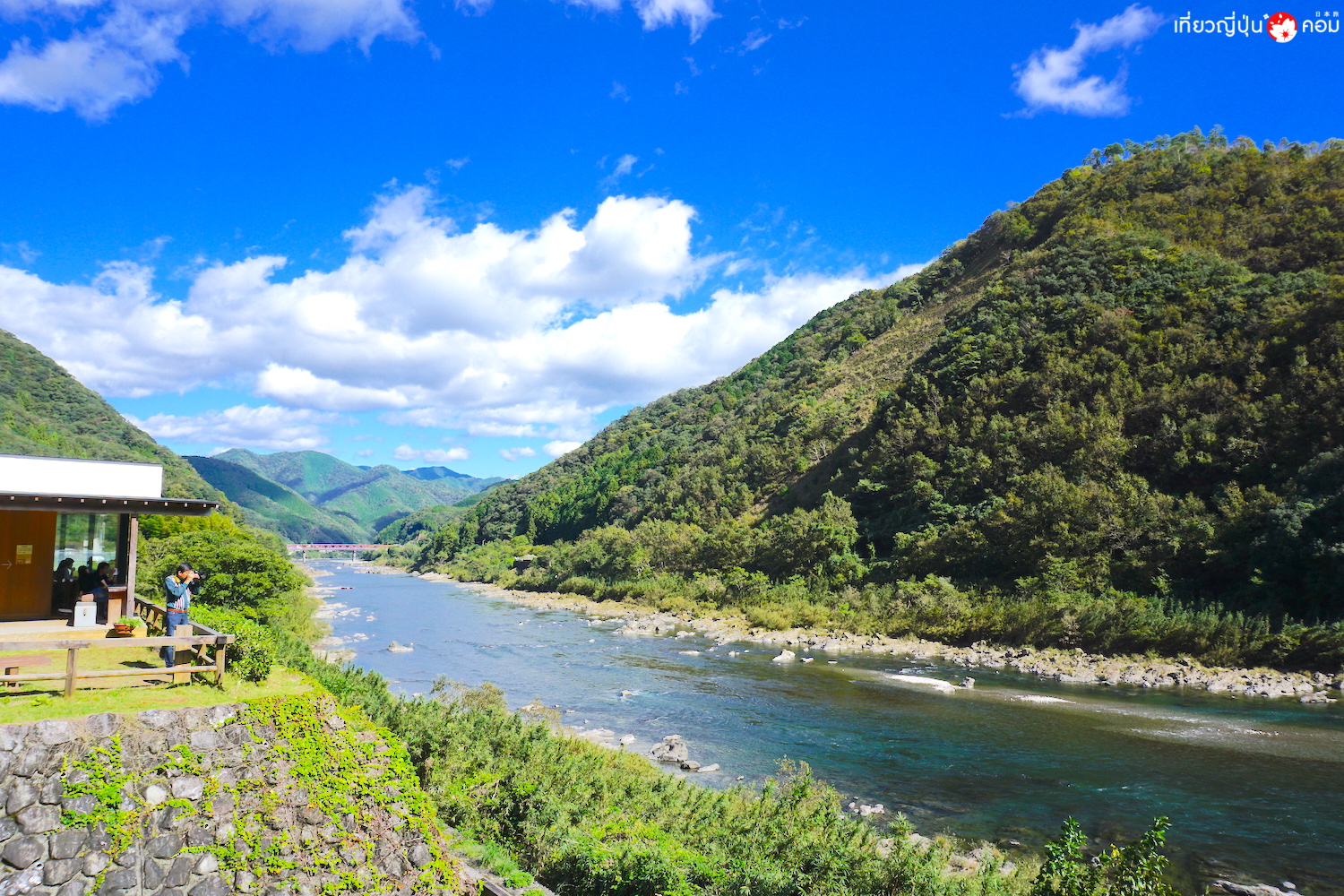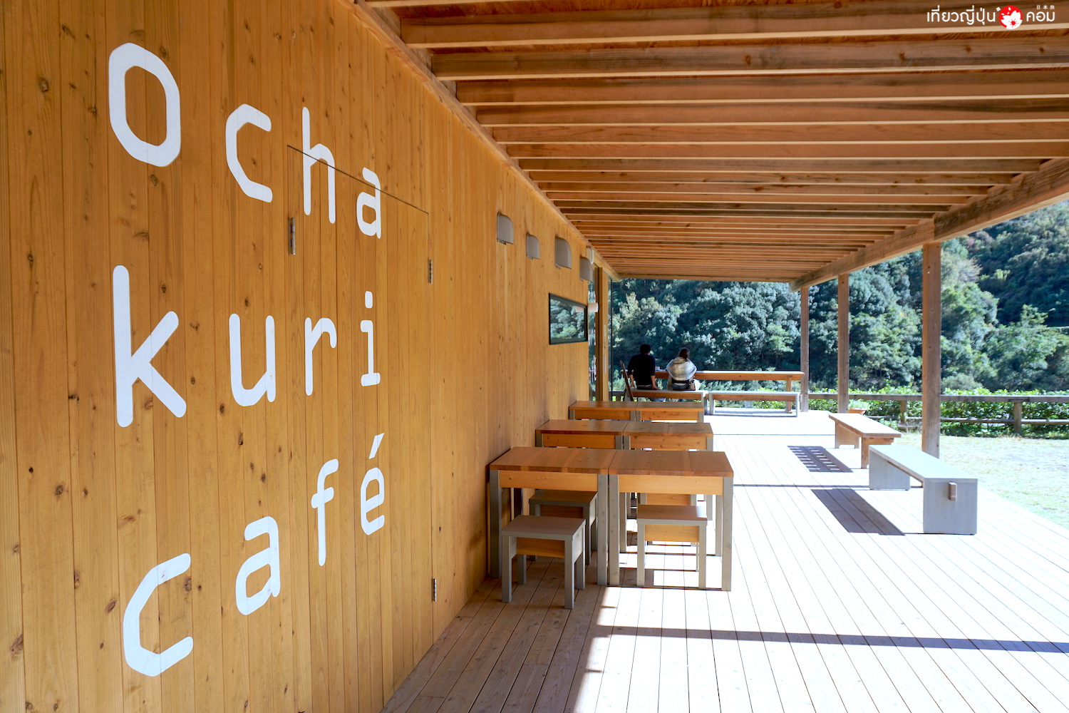 ด้นหลังเป็นที่ตั้งของคาเฟ่เล็กๆ Ocha Kuri Cafe แต่ได้ชมวิวสุดยิ่งใหญ่ของแม่น้ำชิมันโตะและขุนเขา