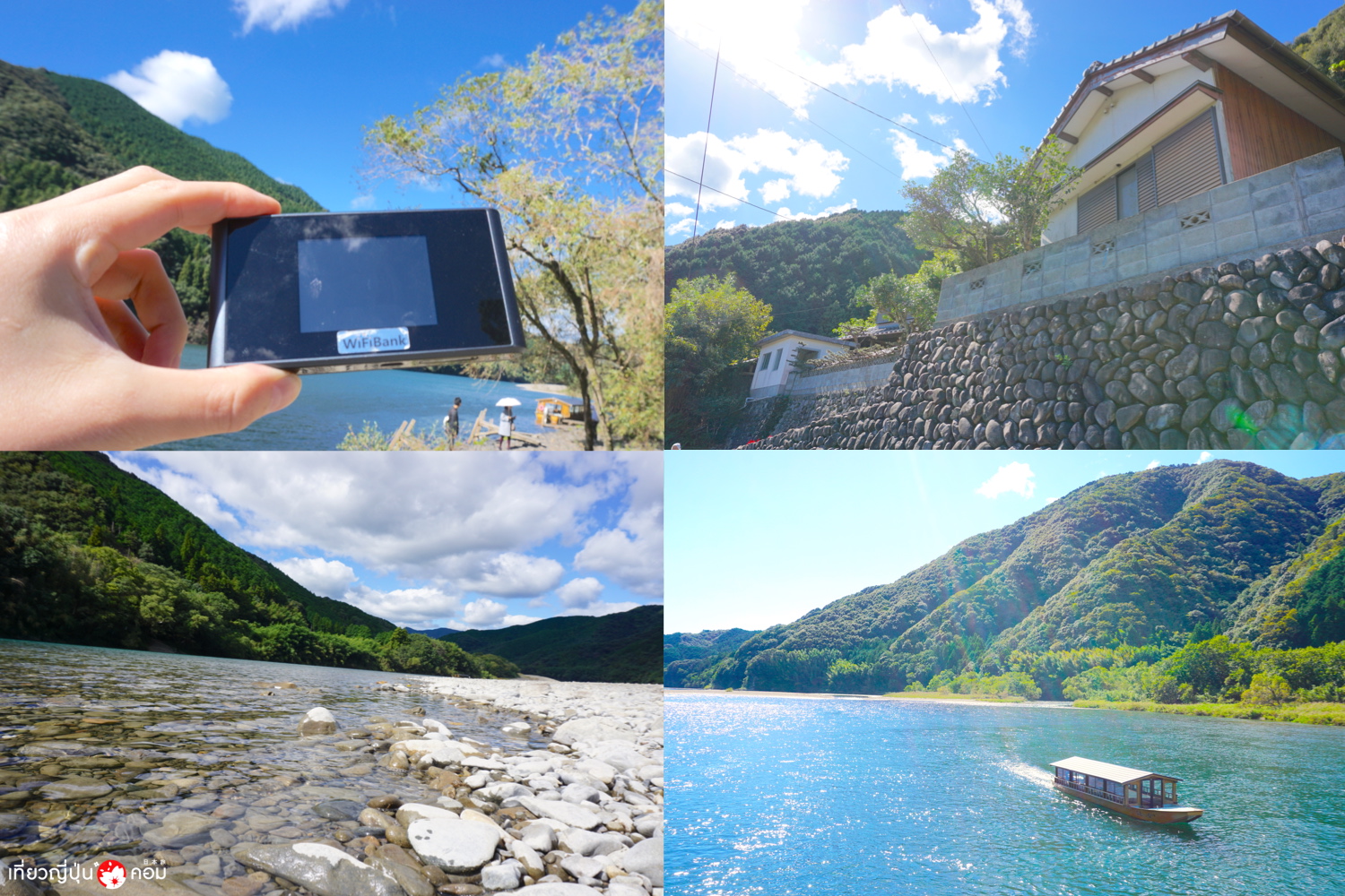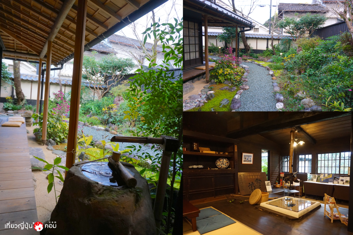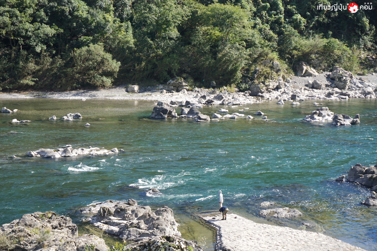 ด้นหลังเป็นที่ตั้งของคาเฟ่เล็กๆ Ocha Kuri Cafe แต่ได้ชมวิวสุดยิ่งใหญ่ของแม่น้ำชิมันโตะและขุนเขา