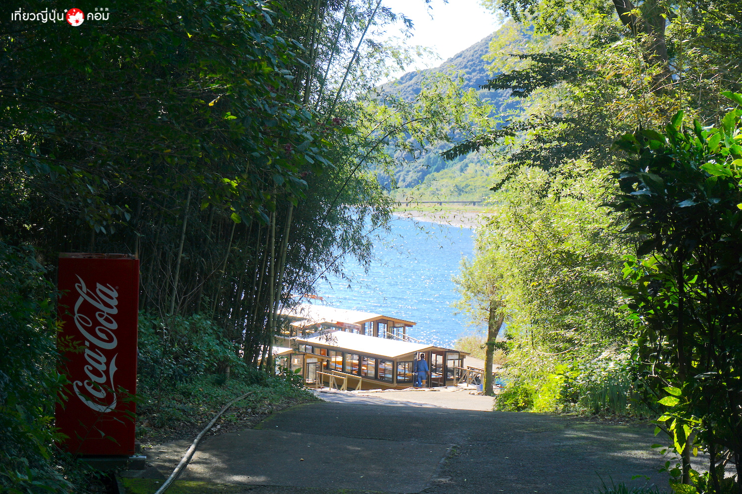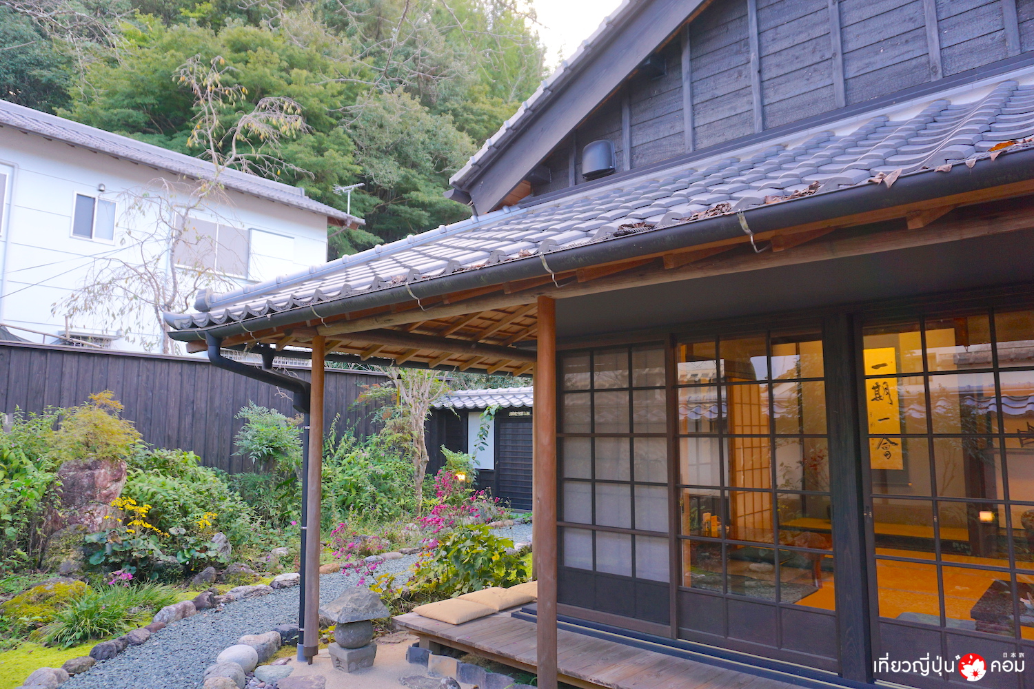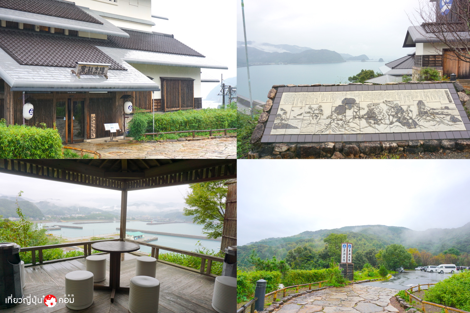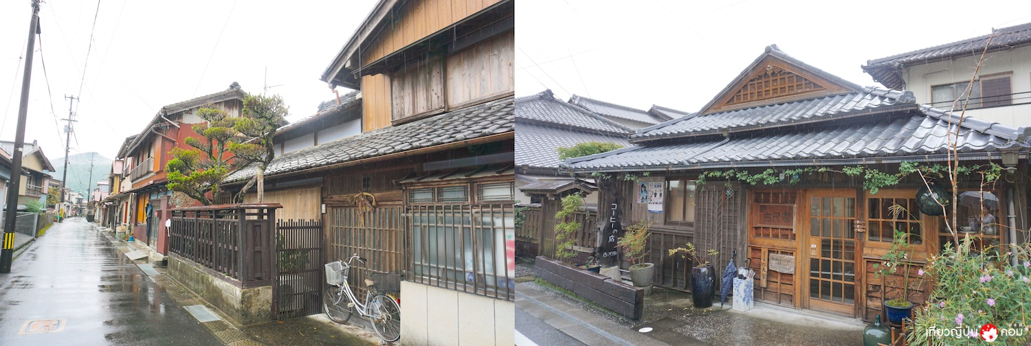 ด้นหลังเป็นที่ตั้งของคาเฟ่เล็กๆ Ocha Kuri Cafe แต่ได้ชมวิวสุดยิ่งใหญ่ของแม่น้ำชิมันโตะและขุนเขา