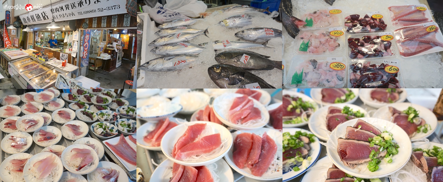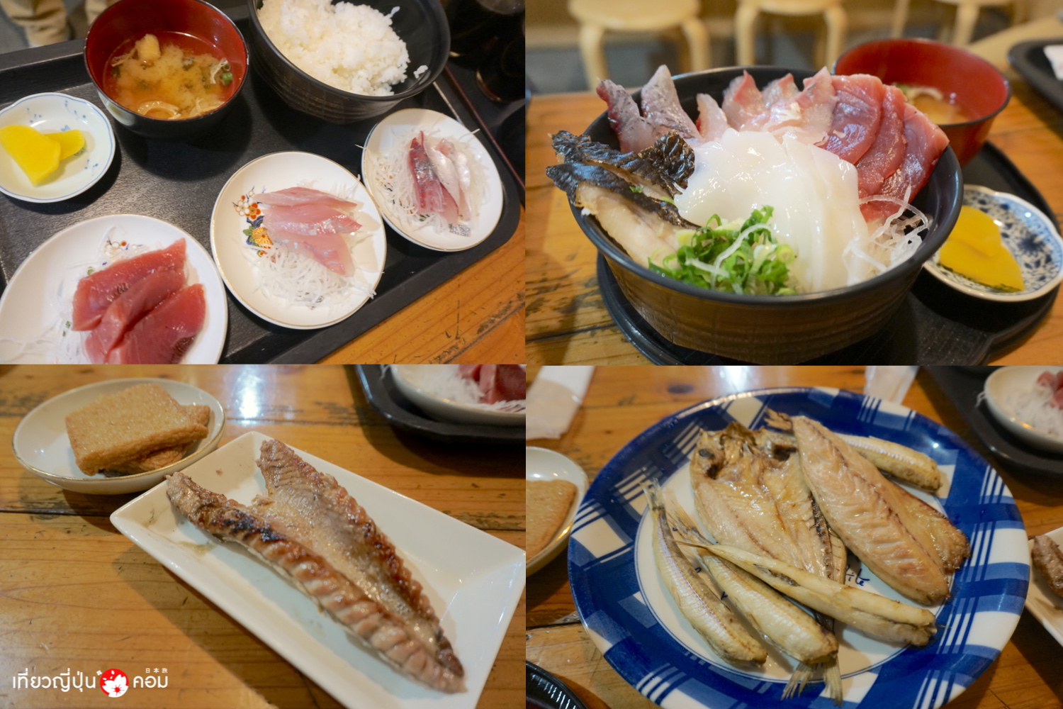 เมื่อเลือกปลาที่ต้องการได้แล้ว สามารถแจ้งพ่อค้าแม่ค้าว่าเราจะนั่งทานที่ร้าน ซึ่งจะมีมุมสำหรับให้นั่งทานได้อย่างสะดวกสบาย พร้อมทั้งบริการข้าวสวยและซุปมิโสะร้อนๆให้อีกด้วย และเมนูยอดนิยมคือ ข้าวหน้ารวมมิตรทะเล (คุเระด้ง) ที่อัดแน่นไปด้วยความสดใหม่ของอาหารทะเลที่มีให้เลือกได้ตามความชอบ หรือถ้าใครไม่ชอบทานปลาดิบจะให้ทางร้านย่างให้สุกก็ได้เช่นกัน