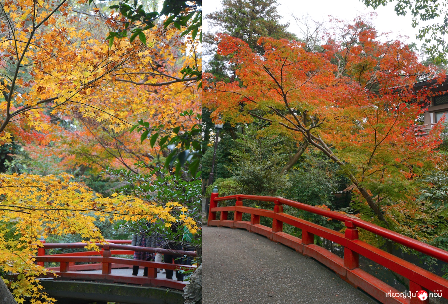 ซึ่งถ้าหากเดินทางไปโตเกียวในช่วงปลายเดือนพฤศจิกายน จะสังเกตุเห็นได้ว่าใบไม้แดงเริ่มร่วงและเปลี่ยนเป็นสีน้ำตาลแล้ว ส่วนต้นแปะก๊วยกำลังเข้าสู่ช่วงพีคเปลี่ยนเป็นสีเหลืองทองทั้งเมือง แต่ถ้าอยากจะชมใบไม้แดง ก็ยังไม่หมดหวังซะทีเดียว เพราะที่เมืองใกล้ๆ อย่าง “คะมะคุระ” กำลังเปลี่ยนสีกันอย่างสวยงามเลย