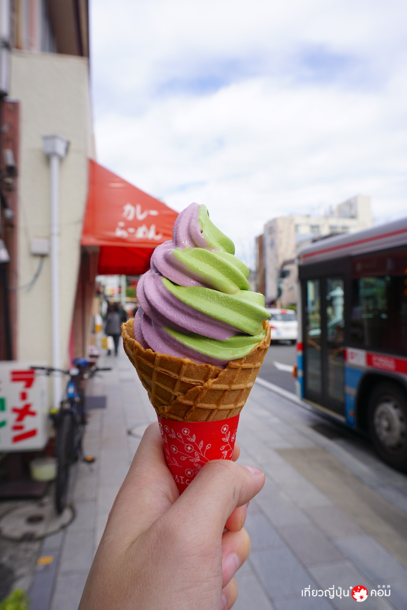 ระหว่างทางขากลับ แวะชิมซอฟครีม ชื่อว่า Ajisai ที่ใช้รสมัทฉะและมันม่วง ผสมกัน ที่ร้าน Imoyoshi