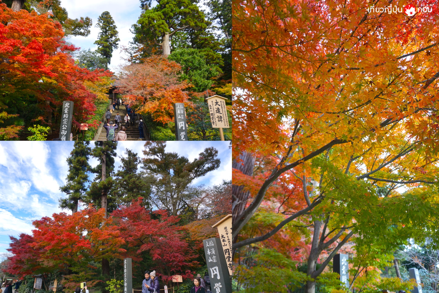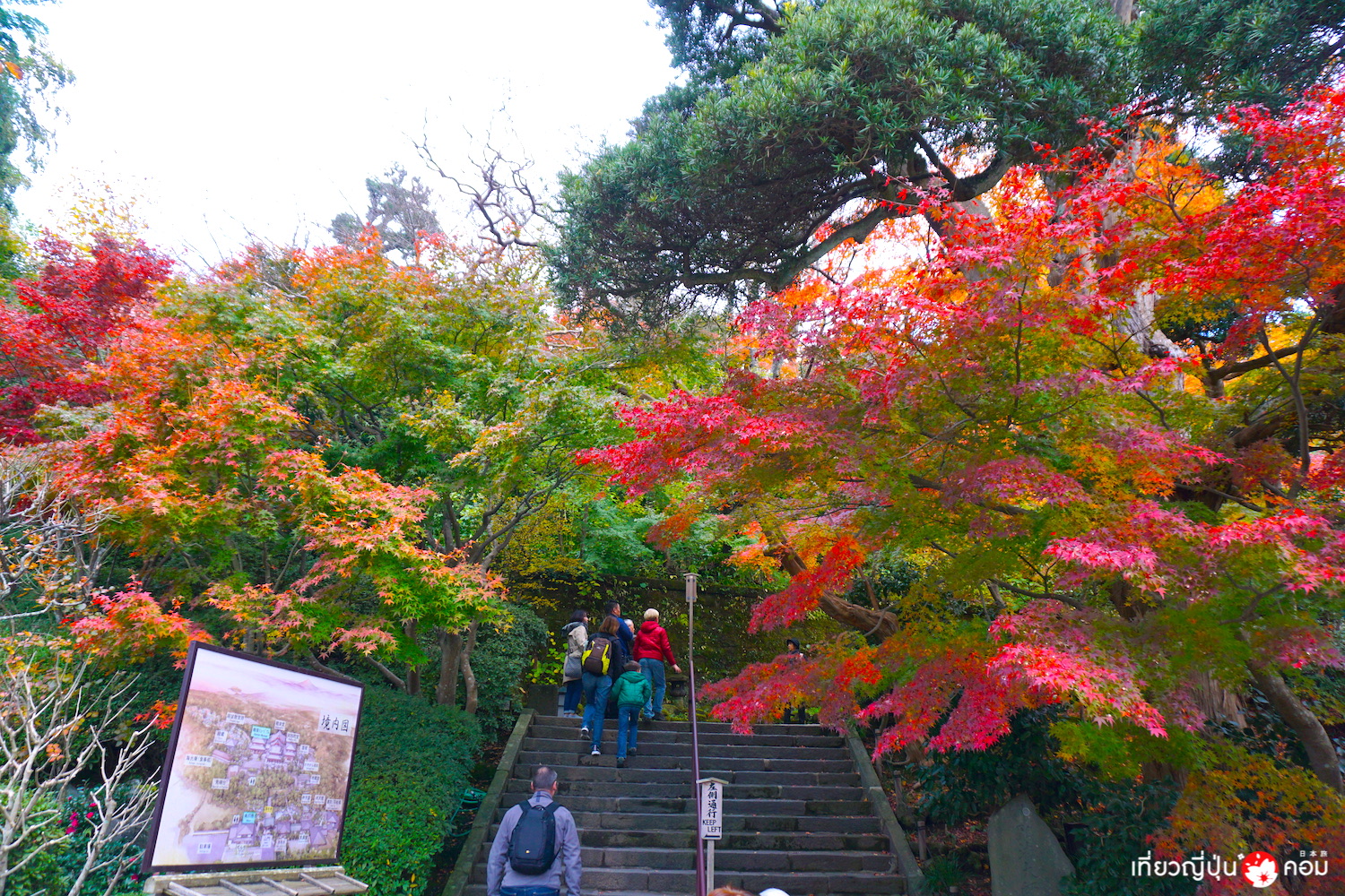 เราสามารถเดินทางไปชมใบไม้แดง เที่ยวอดีตเมืองหลวงเก่าของญี่ปุ่น ท่ามกลางวัดศาลเจ้าและบรรยากาศเมืองโบราณกันได้ ภายใน 1 วัน มาวันธรรมดาคนไม่เยอะ ไม่ต้องแย่งกันหามุมถ่ายรูป โดยวัดที่แนะนำ คือ Tsurugaoka Hachimangu, Hasedera และ Engakuji รับรองว่าจะได้เต็มอิ่มกับใบไม้แดงแน่นอน