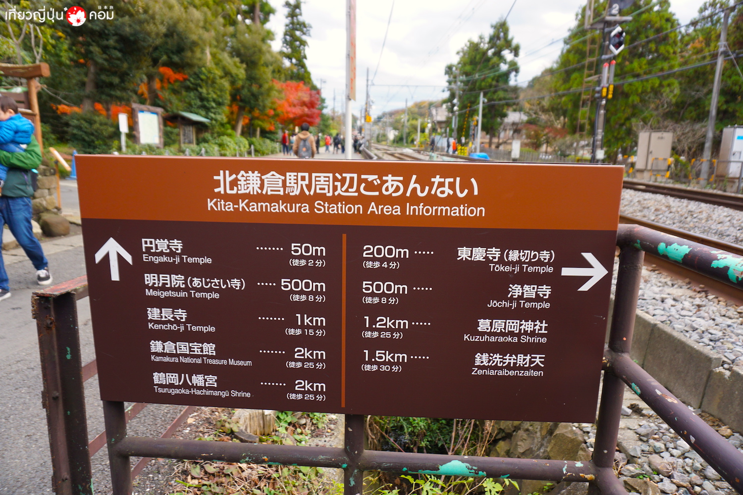 ป้ายบอกที่ตั้งของวัดและศาลเจ้าในบริเวณรอบๆสถานี Kita-Kamakura