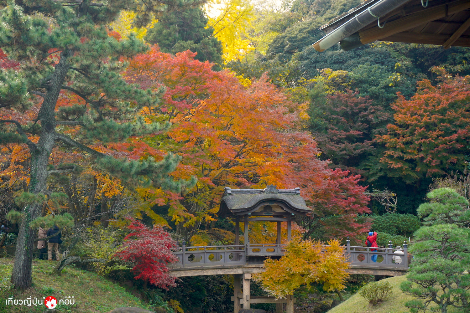 มาเริ่มต้นกันที่จุดชมใบไม้เปลี่ยนสีที่มีชื่อเสียงที่สุดของเมืองกันที่ สวนซังเคเอ็น (Sankeien)
