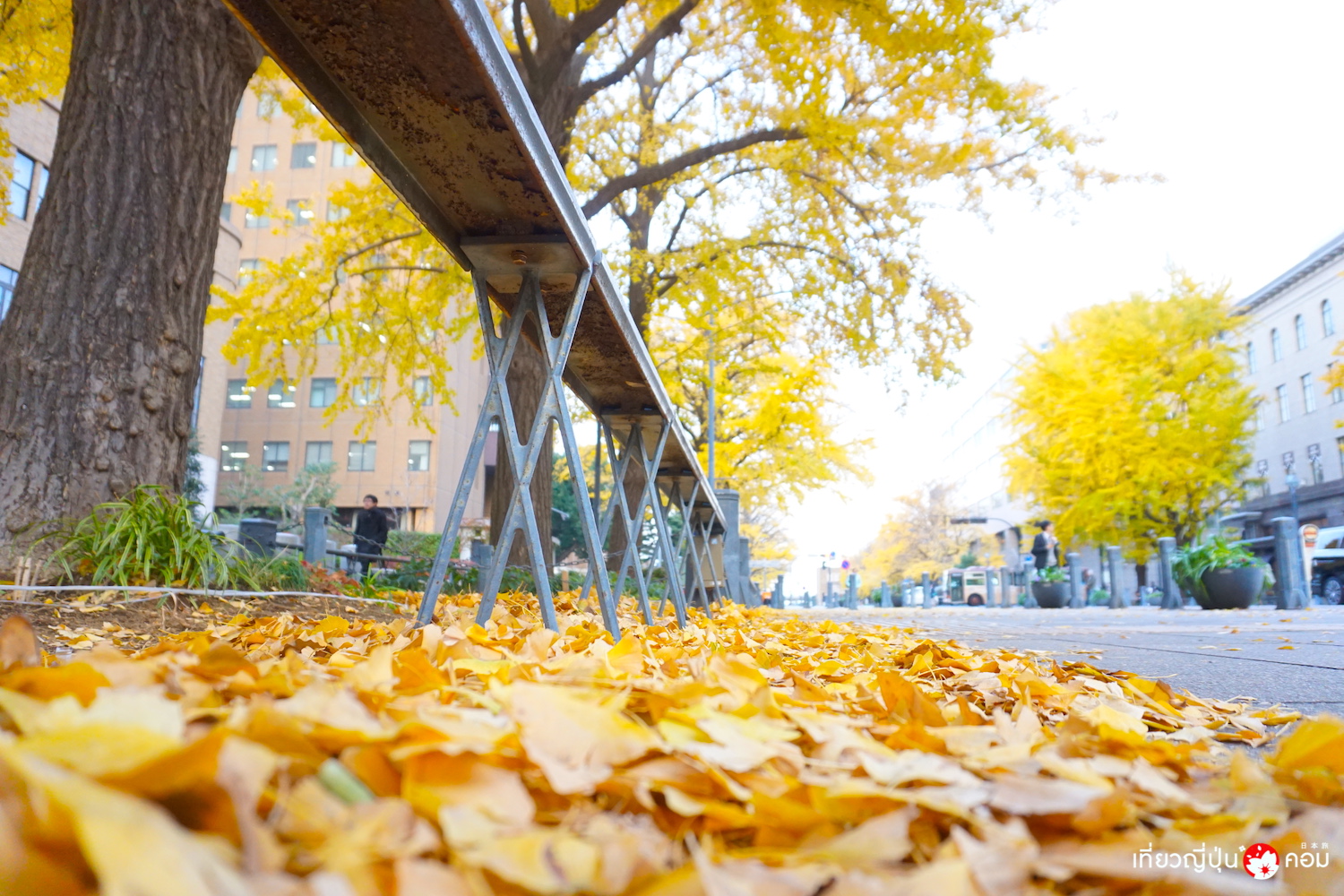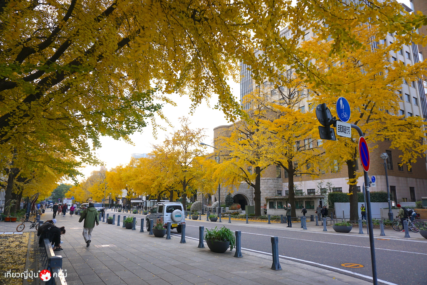 หลังจากนั้นระหว่างทางกลับ เราแวะเดินชมแนวต้นแปะก๊วยที่ ถนนนิฮงโอโดริ (Nihon Odori)