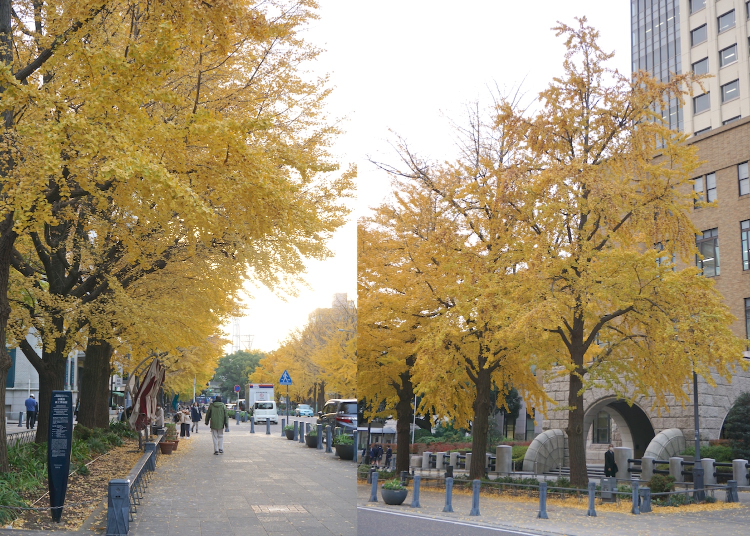 ซึ่งถ้าหากเดินทางไปโตเกียวในช่วงปลายเดือนพฤศจิกายน จะสังเกตุเห็นได้ว่าใบไม้แดงเริ่มร่วงและเปลี่ยนเป็นสีน้ำตาลแล้ว ส่วนต้นแปะก๊วยกำลังเข้าสู่ช่วงพีคเปลี่ยนเป็นสีเหลืองทองทั้งเมือง แต่ถ้าอยากจะชมใบไม้แดง ก็ยังไม่หมดหวังซะทีเดียว เพราะที่เมืองใกล้ๆ อย่าง “โยโกฮะมะ” กำลังเปลี่ยนสีกันอย่างสวยงามเช่นเดียวกัน